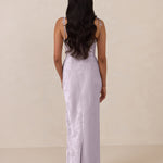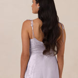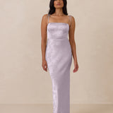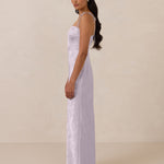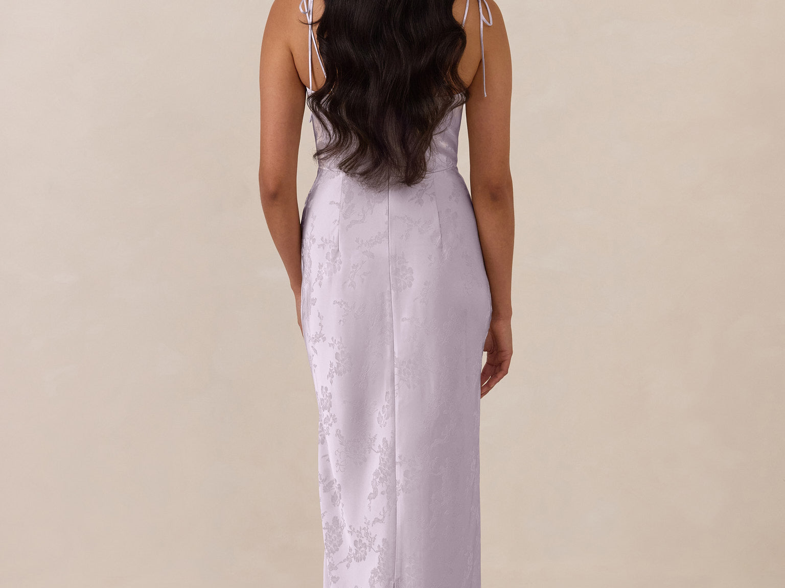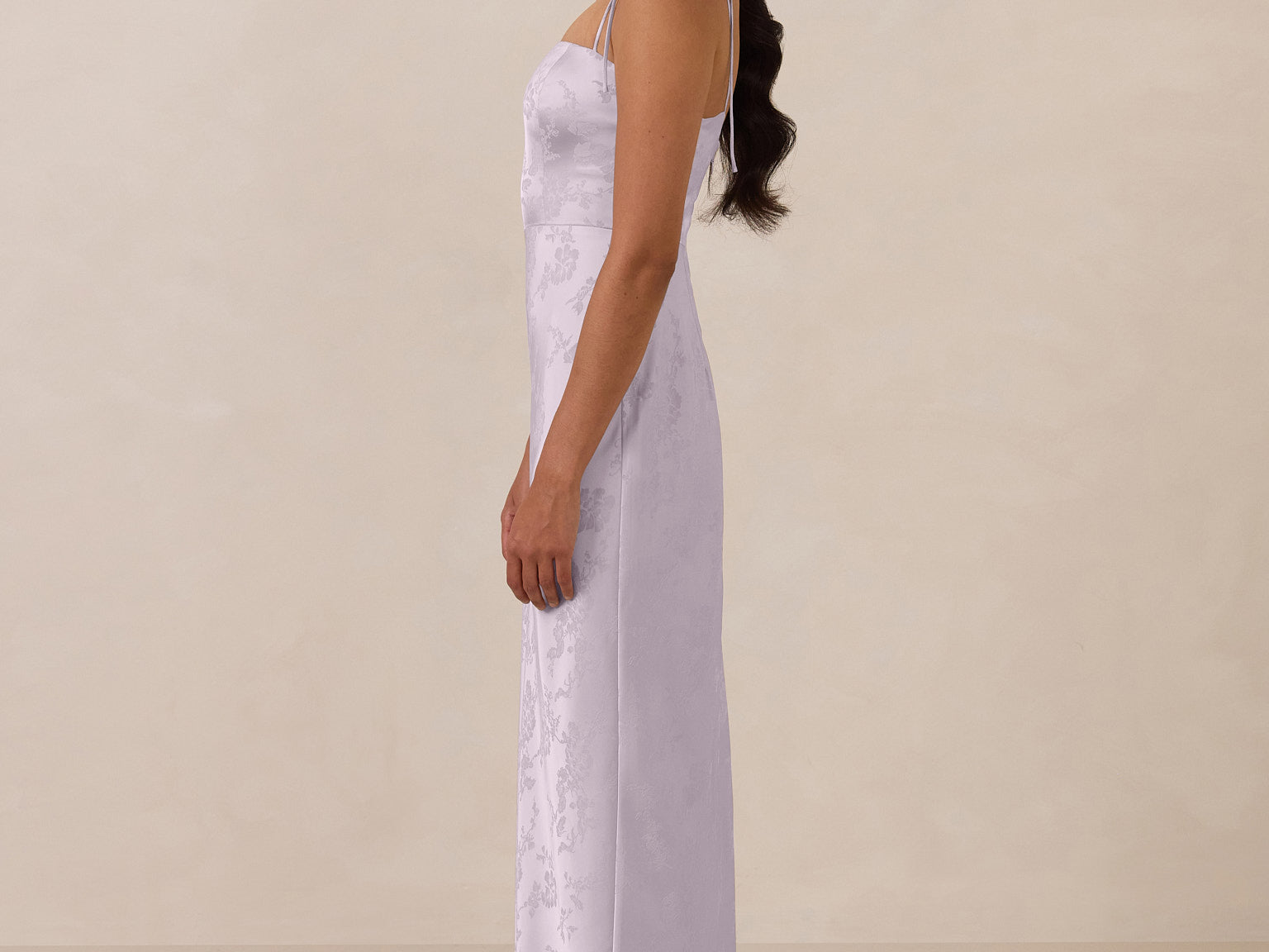 The Beckett dress embodies understated sophistication. Its floor-grazing silhouette flows effortlessly, complemented by a subtle back slit for added movement and a modern touch. Featuring a softly structured bodice and adjustable tie straps, it ensures both comfort and a tailored fit, making it perfect for any occasion requiring quiet confidence.