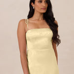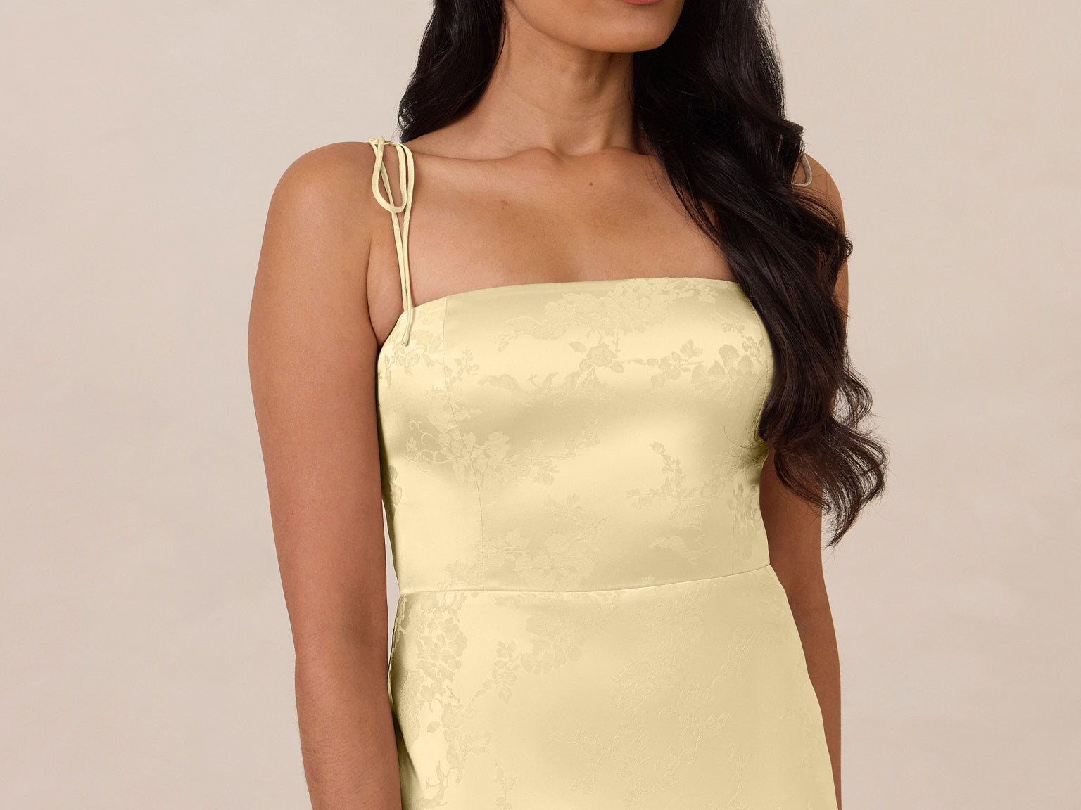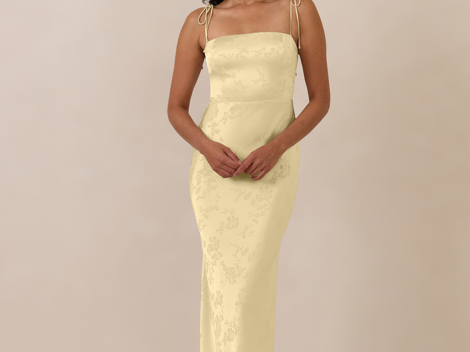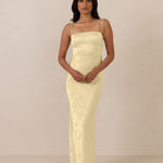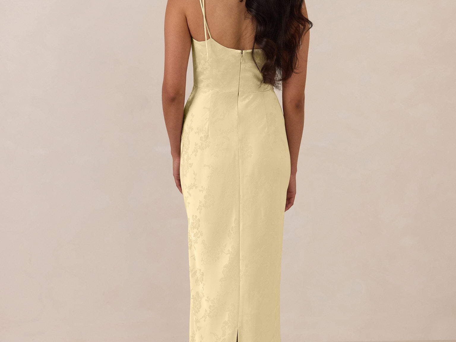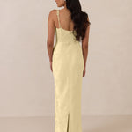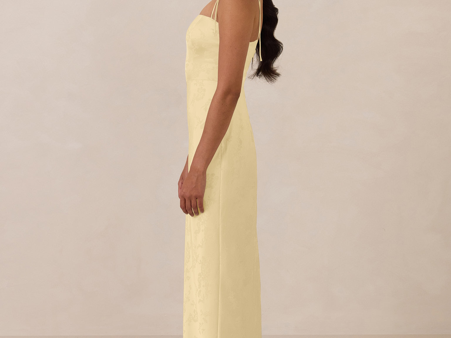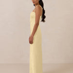 The Beckett dress embodies understated sophistication. Its floor-grazing silhouette flows effortlessly, complemented by a subtle back slit for added movement and a modern touch. Featuring a softly structured bodice and adjustable tie straps, it ensures both comfort and a tailored fit, making it perfect for any occasion requiring quiet confidence.