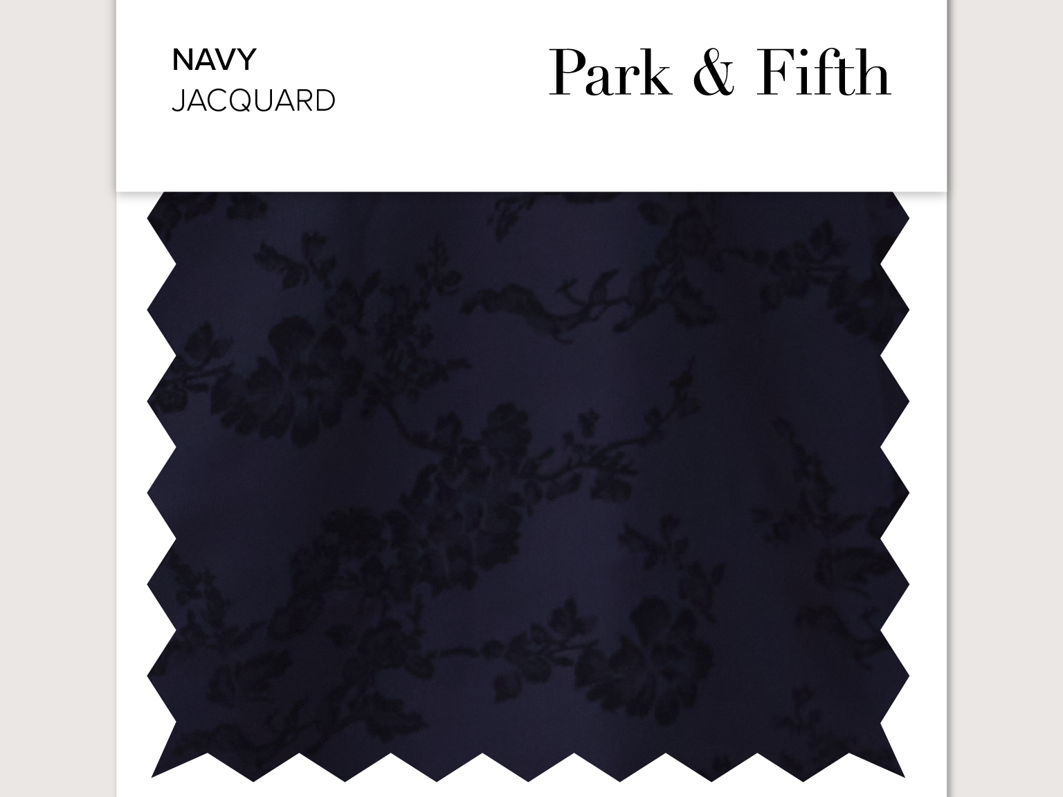 Our Jacquard is a medium-weight fabric that offers a structured feel and elegant floral patterns. It's blended with satin for a subtle sheen and soft, luxurious finish. This fabric holds its shape beautifully and drapes gracefully for a polished, tailored look, with very little stretch.