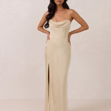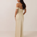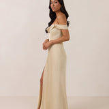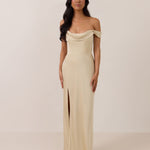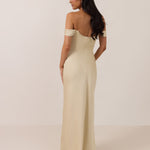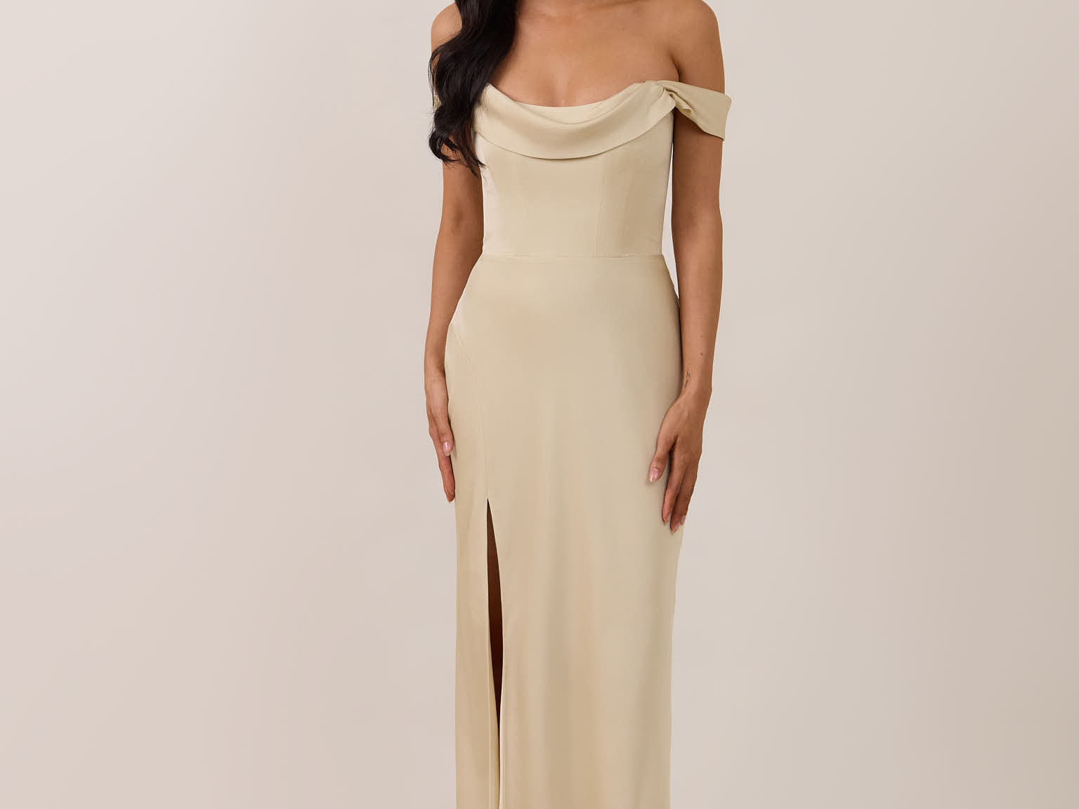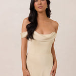 The Prescott Dress is the definition of effortless elegance. Designed with a soft draped chiffon neckline and delicate off-the-shoulder straps, it strikes the perfect balance between romance and refinement. For added versatility, the straps are removable, allowing you to easily switch up your look.