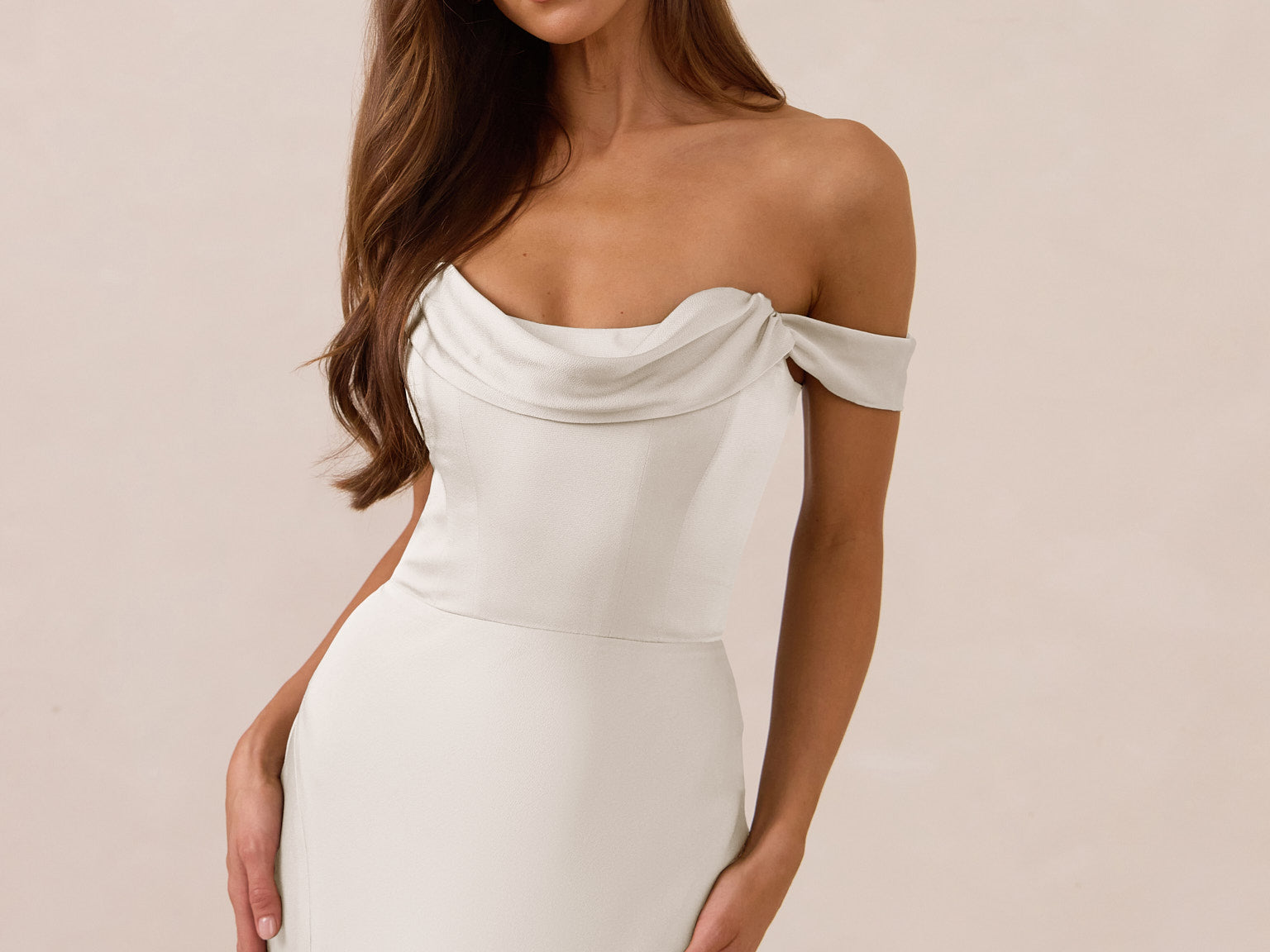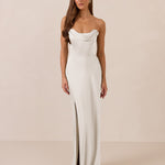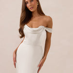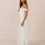 The Prescott Dress is the definition of effortless elegance. Designed with a soft draped chiffon neckline and delicate off-the-shoulder straps, it strikes the perfect balance between romance and refinement. For added versatility, the straps are removable, allowing you to easily switch up your look.