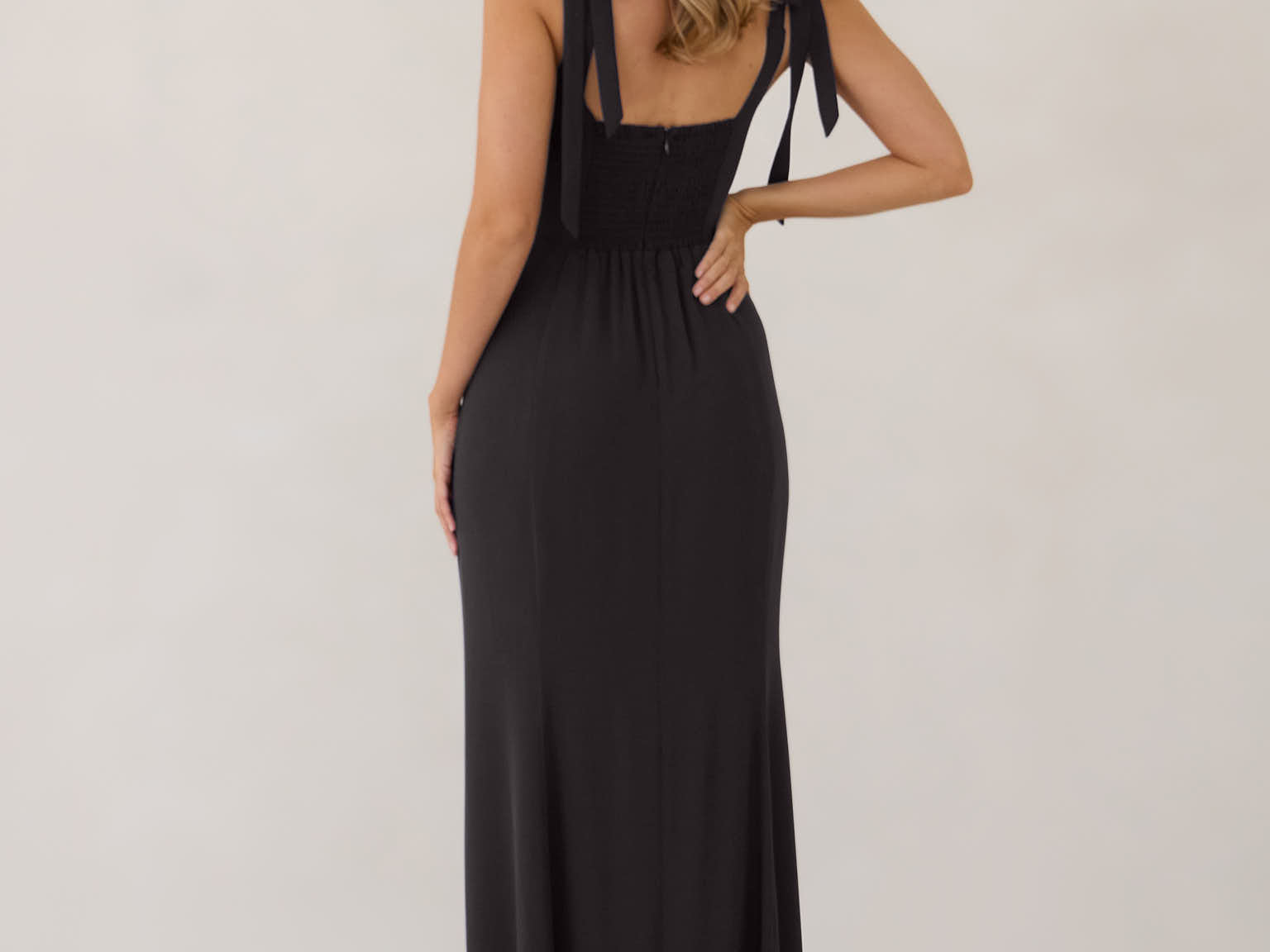 This dress does it all - with adjustable tie straps and a shirred back for comfort and fit, to the stunning full-length skirt, Riley is it. Wear this style for a garden party wedding, or to a formal hotel wedding - she’s versatile.