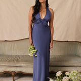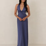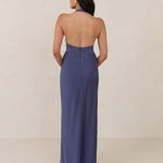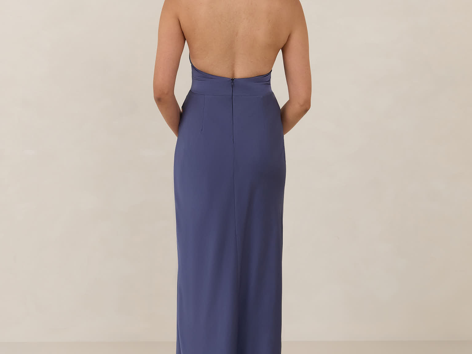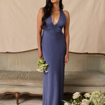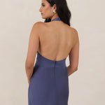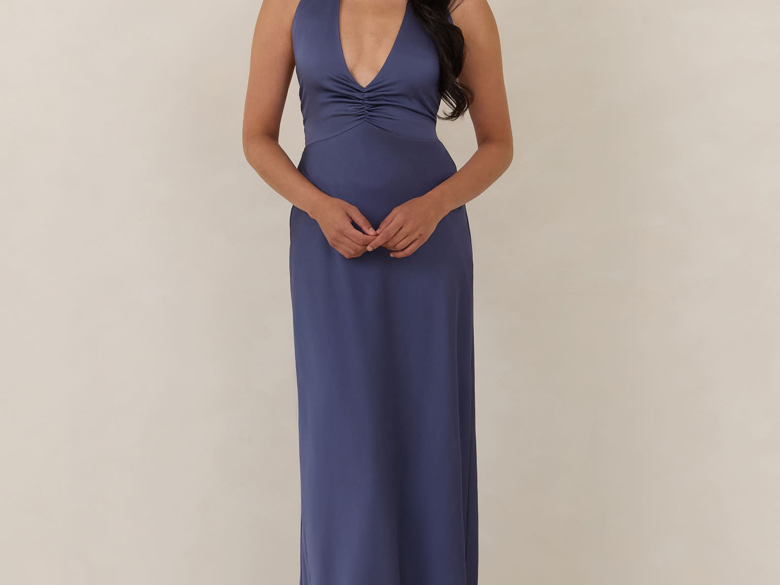 The perfect balance between bold and refined, this satin halter dress is designed to turn heads with quiet confidence. Featuring a plunging halter neckline that highlights the neck and collarbone, it's finished with a cinched detail at the bust to enhance shape and create a beautifully flattering silhouette.