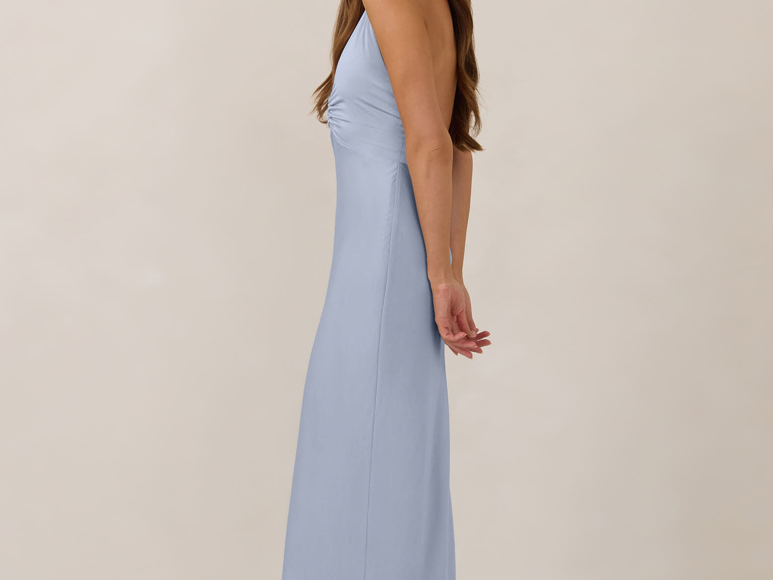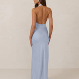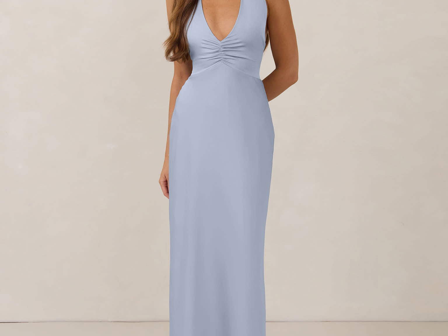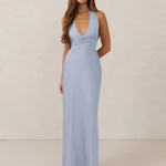 The perfect balance between bold and refined, this satin halter dress is designed to turn heads with quiet confidence. Featuring a plunging halter neckline that highlights the neck and collarbone, it's finished with a cinched detail at the bust to enhance shape and create a beautifully flattering silhouette.