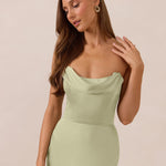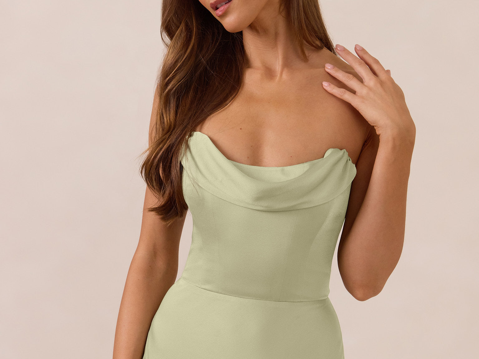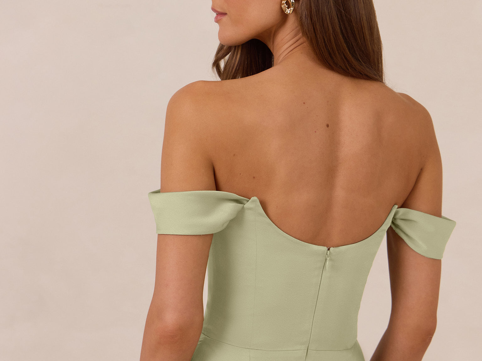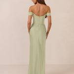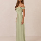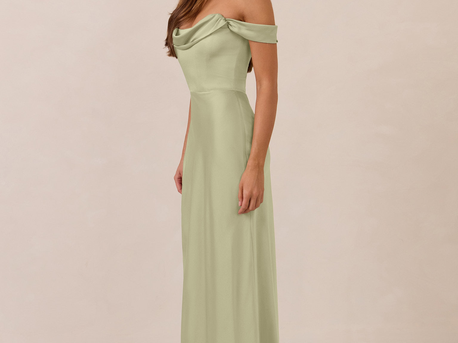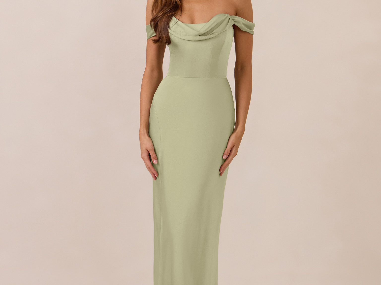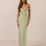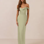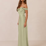 The Prescott Dress is the definition of effortless elegance. Designed with a soft draped chiffon neckline and delicate off-the-shoulder sleeves, it strikes the perfect balance between romance and refinement.