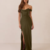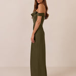 The Prescott Dress is the definition of effortless elegance. Designed with a soft draped chiffon neckline and delicate off-the-shoulder straps, it strikes the perfect balance between romance and refinement. For added versatility, the straps are removable, allowing you to easily switch up your look.