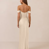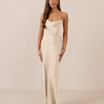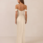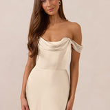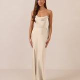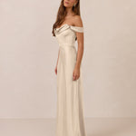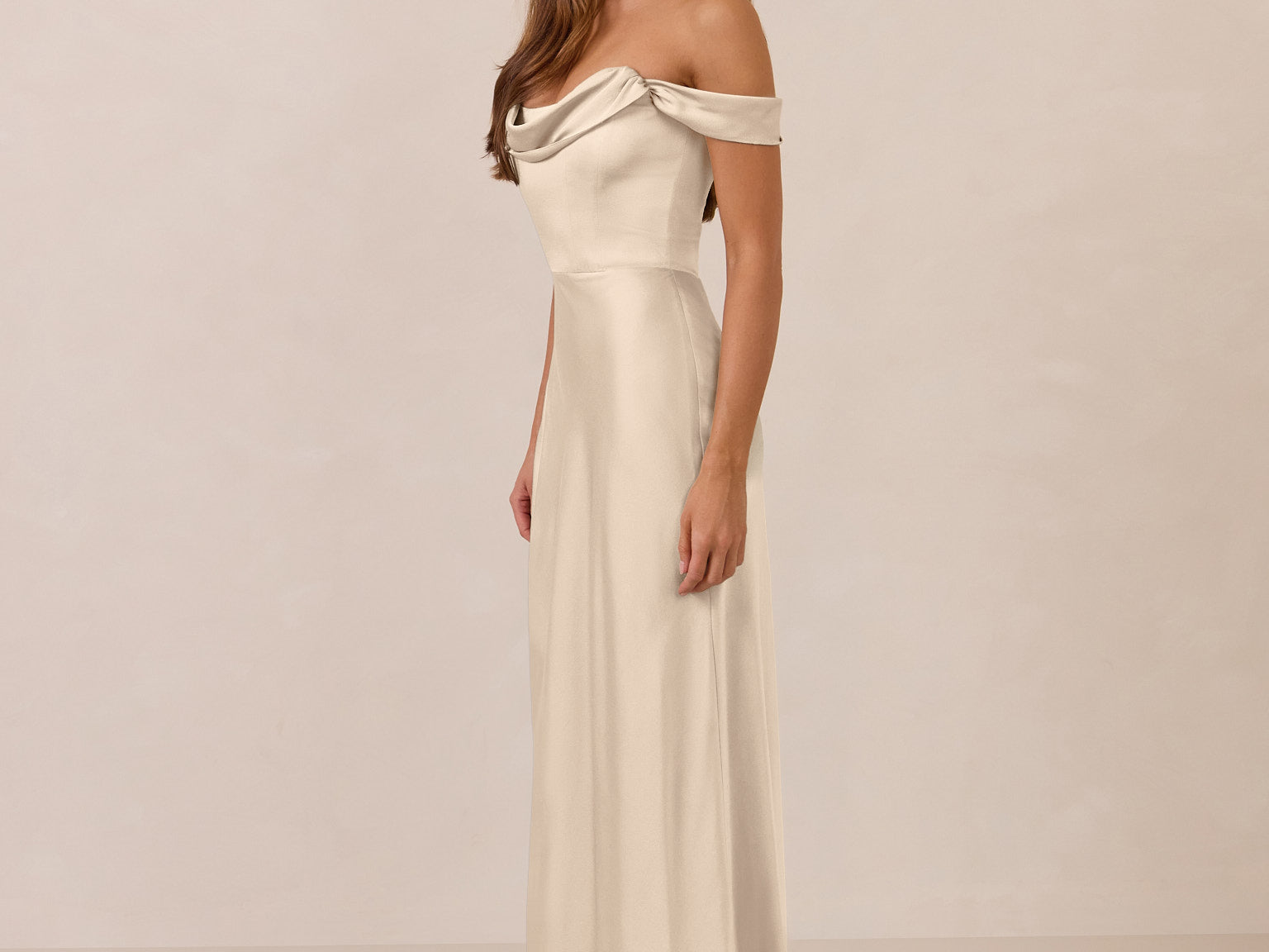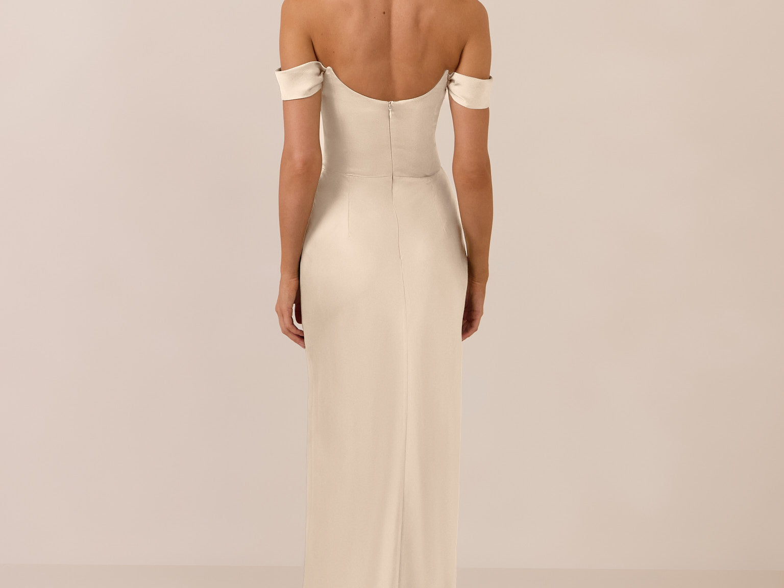 The Prescott Dress is the definition of effortless elegance. Designed with a soft draped chiffon neckline and delicate off-the-shoulder straps, it strikes the perfect balance between romance and refinement. For added versatility, the straps are removable, allowing you to easily switch up your look.
