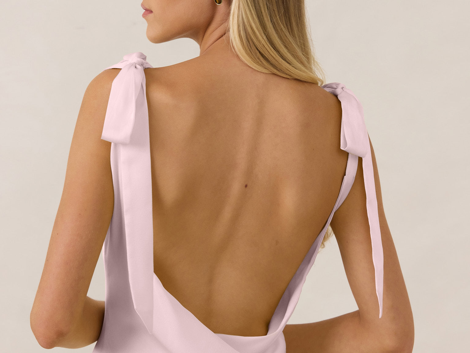 A true classic beauty - the sleek and simple front paired with the striking open, cowl back and tie straps is a match made in heaven.