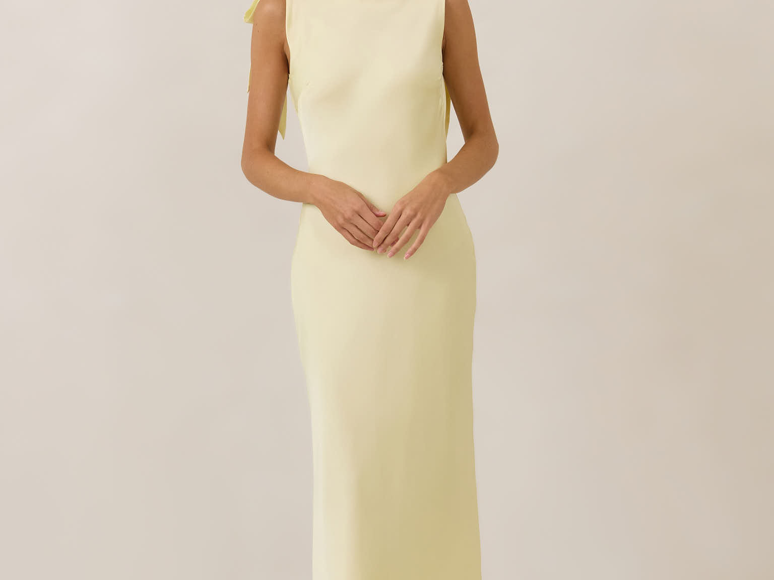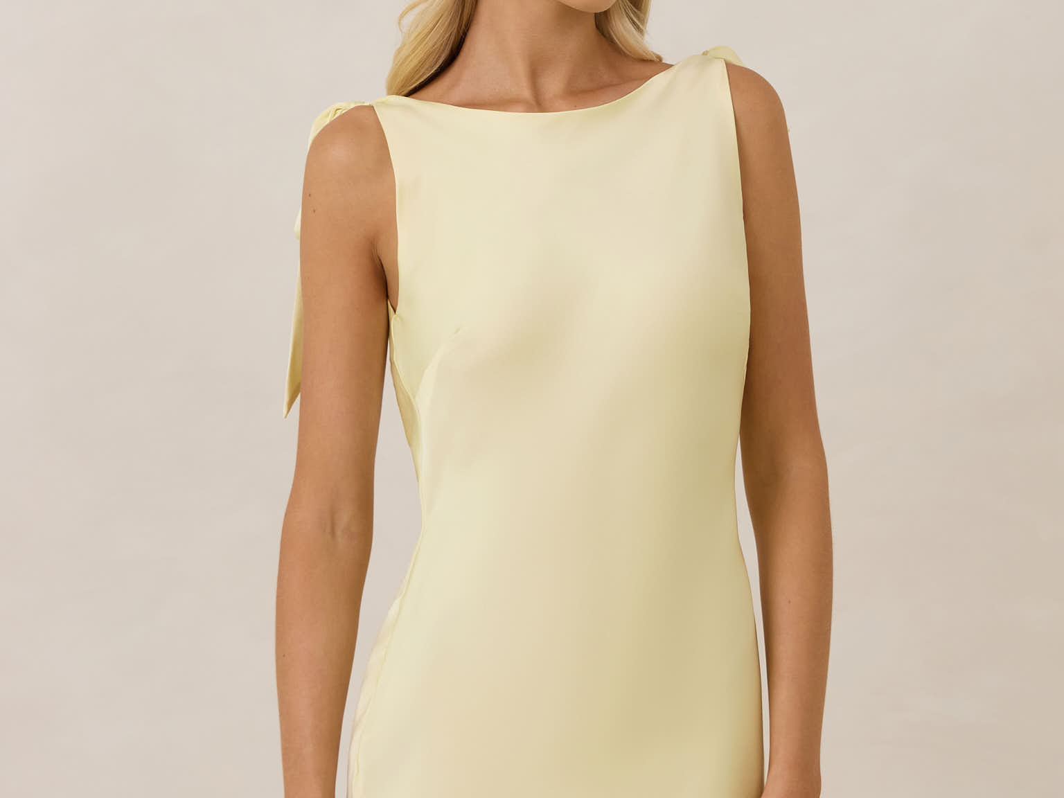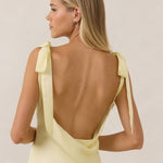A true classic beauty - the sleek and simple front paired with the striking open, cowl back and tie straps is a match made in heaven.
