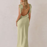 A true classic beauty - the sleek and simple front paired with the striking open, cowl back and tie straps is a match made in heaven.