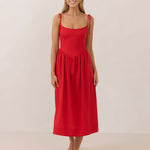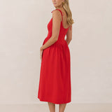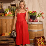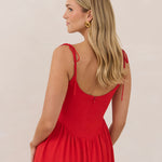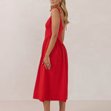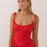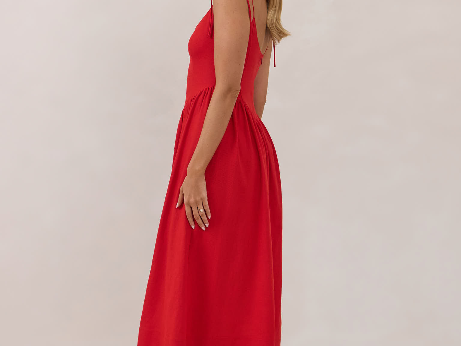Your go-to for easy summer days. Made from breathable Palma, it features a soft scoop neckline, delicate tie straps, and a fitted bodice that flows into a gathered skirt with natural movement. Perfect for anything from market strolls to weekend plans.