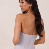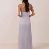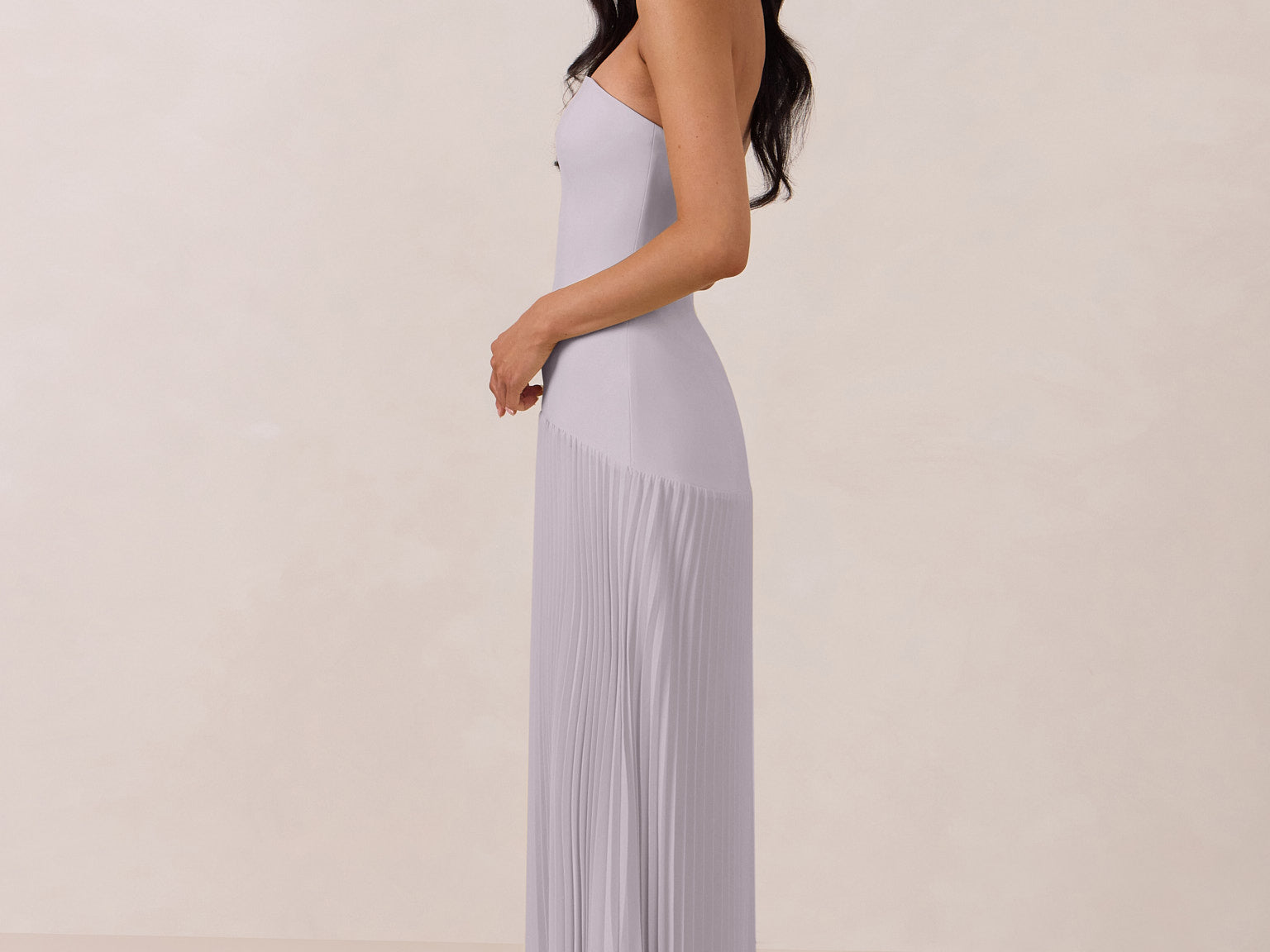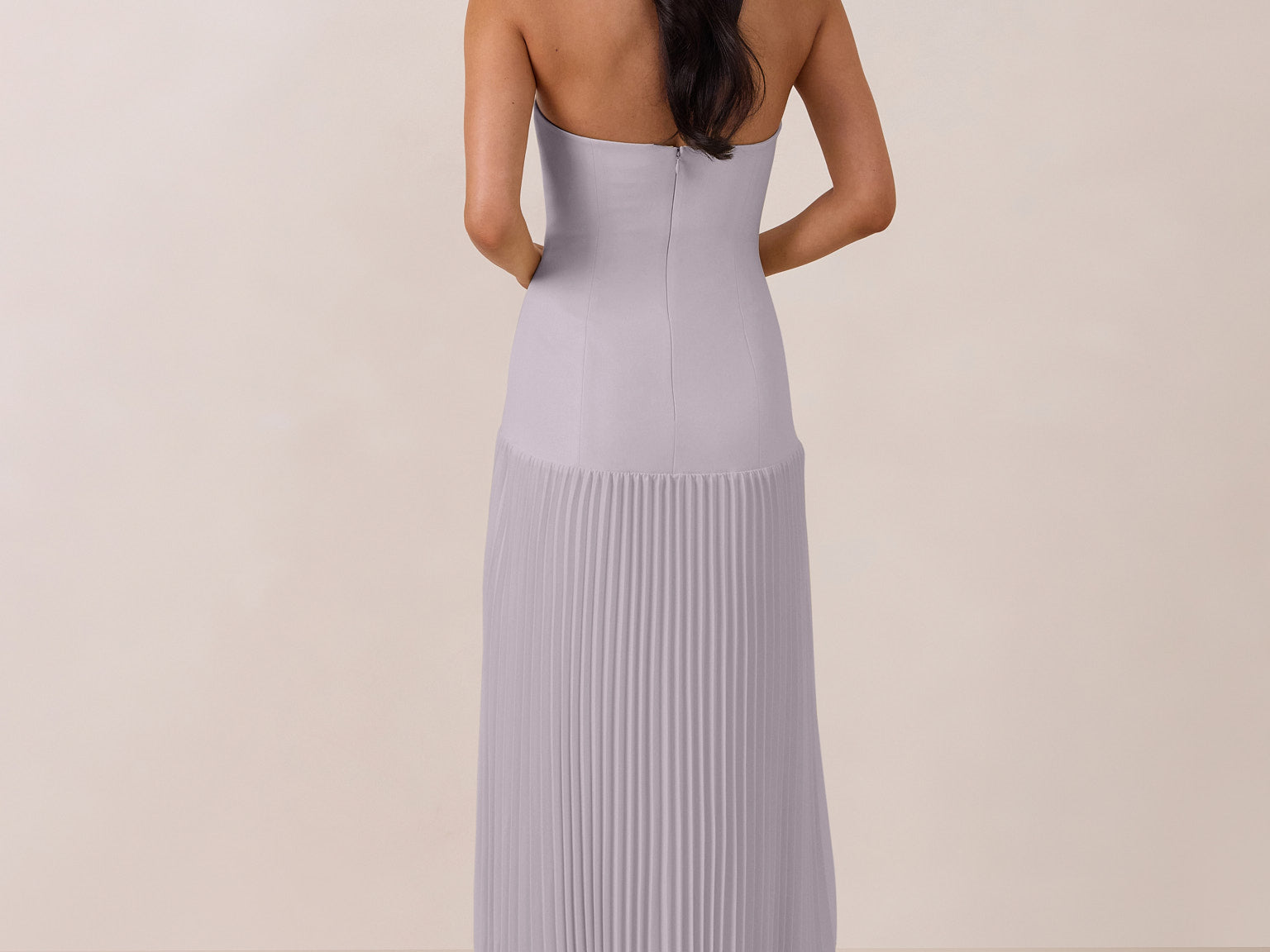 The contrast of the sleek bodice and the pleated skirt make this dress a real stunner. With boning through the bodice and into the dropped waist, and a light flowy skirt, you’ll be all set to dance the night away - twirls included.