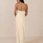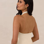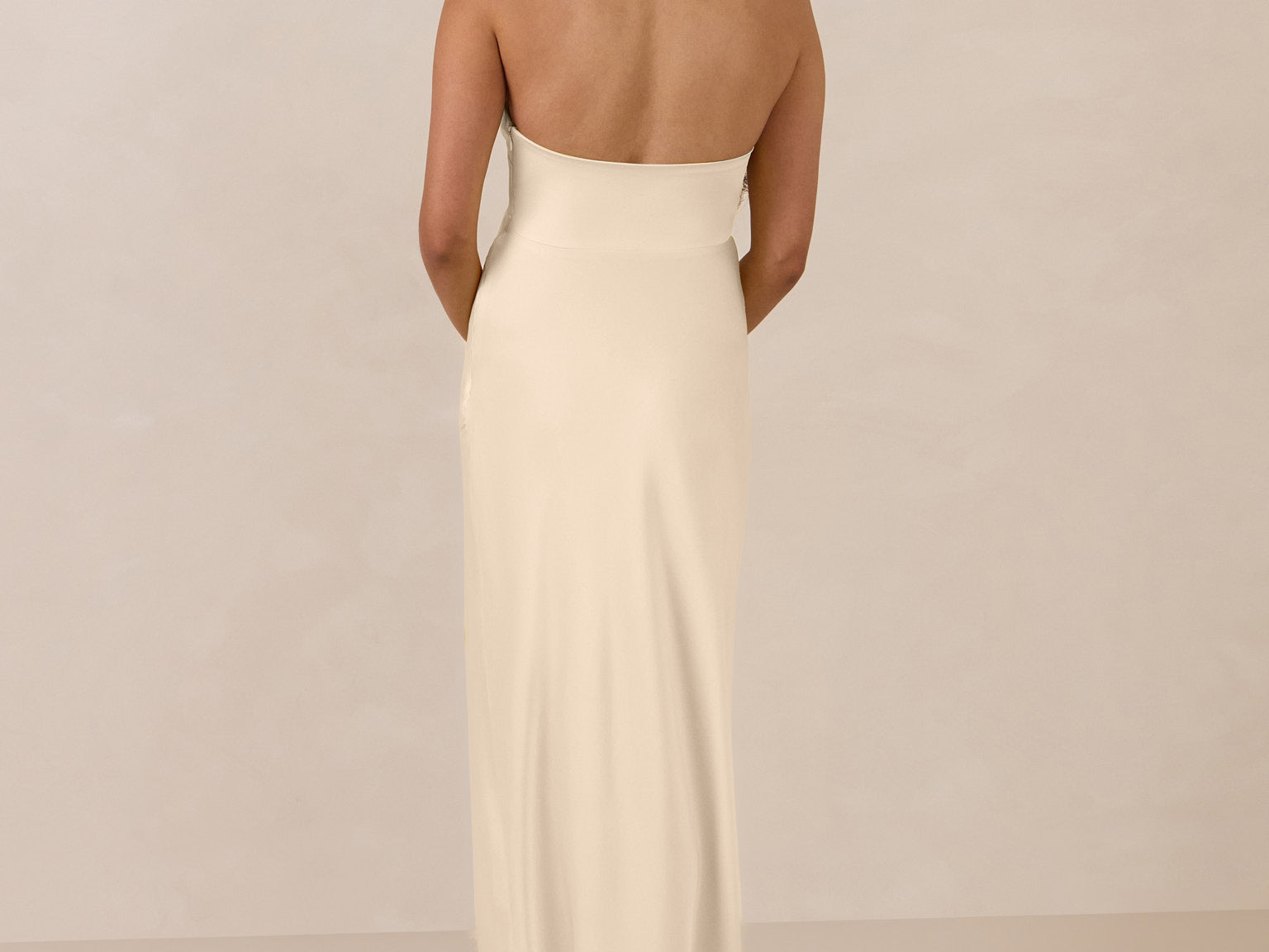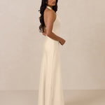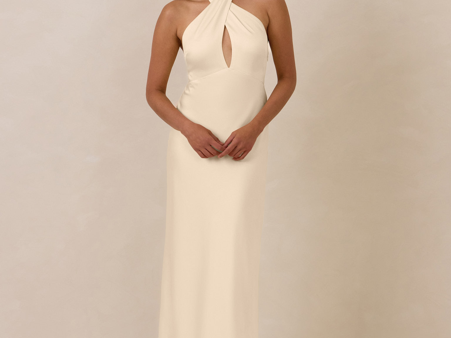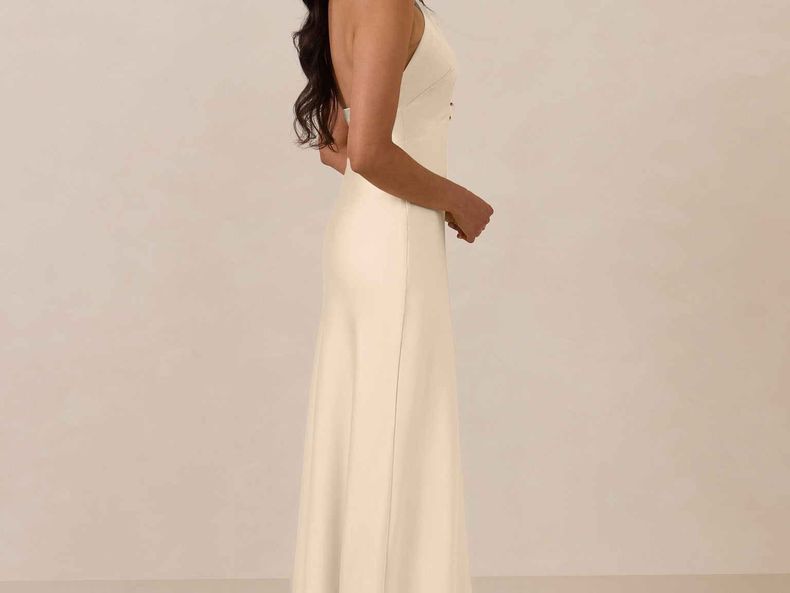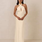 The Emery dress redefines timeless elegance with a contemporary twist. Crafted from our signature bubble satin, this full-length dress features a flattering cross-front halter neckline, creating soft drapes and a delicate keyhole detail for a touch of allure. The bias-cut skirt gracefully skims the body, ensuring comfort and a flawless silhouette that you'll want to wear repeatedly.
