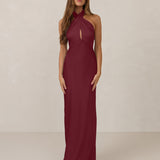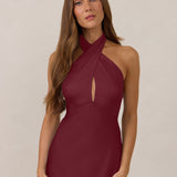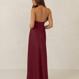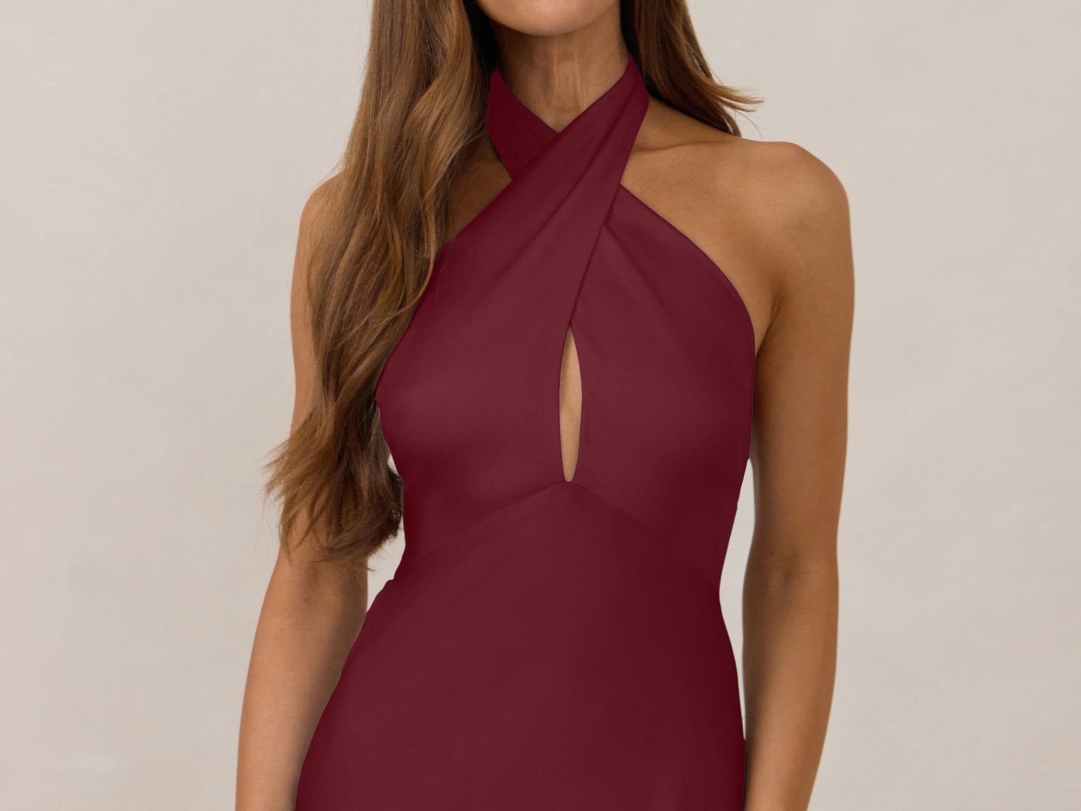 The Emery dress redefines timeless elegance with a contemporary twist. Crafted from our signature bubble satin, this full-length dress features a flattering cross-front halter neckline, creating soft drapes and a delicate keyhole detail for a touch of allure. The bias-cut skirt gracefully skims the body, ensuring comfort and a flawless silhouette that you'll want to wear repeatedly.