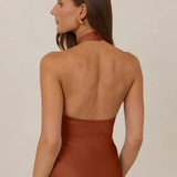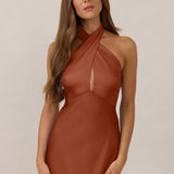 The Emery dress redefines timeless elegance with a contemporary twist. Crafted from our signature bubble satin, this full-length dress features a flattering cross-front halter neckline, creating soft drapes and a delicate keyhole detail for a touch of allure. The bias-cut skirt gracefully skims the body, ensuring comfort and a flawless silhouette that you'll want to wear repeatedly.
