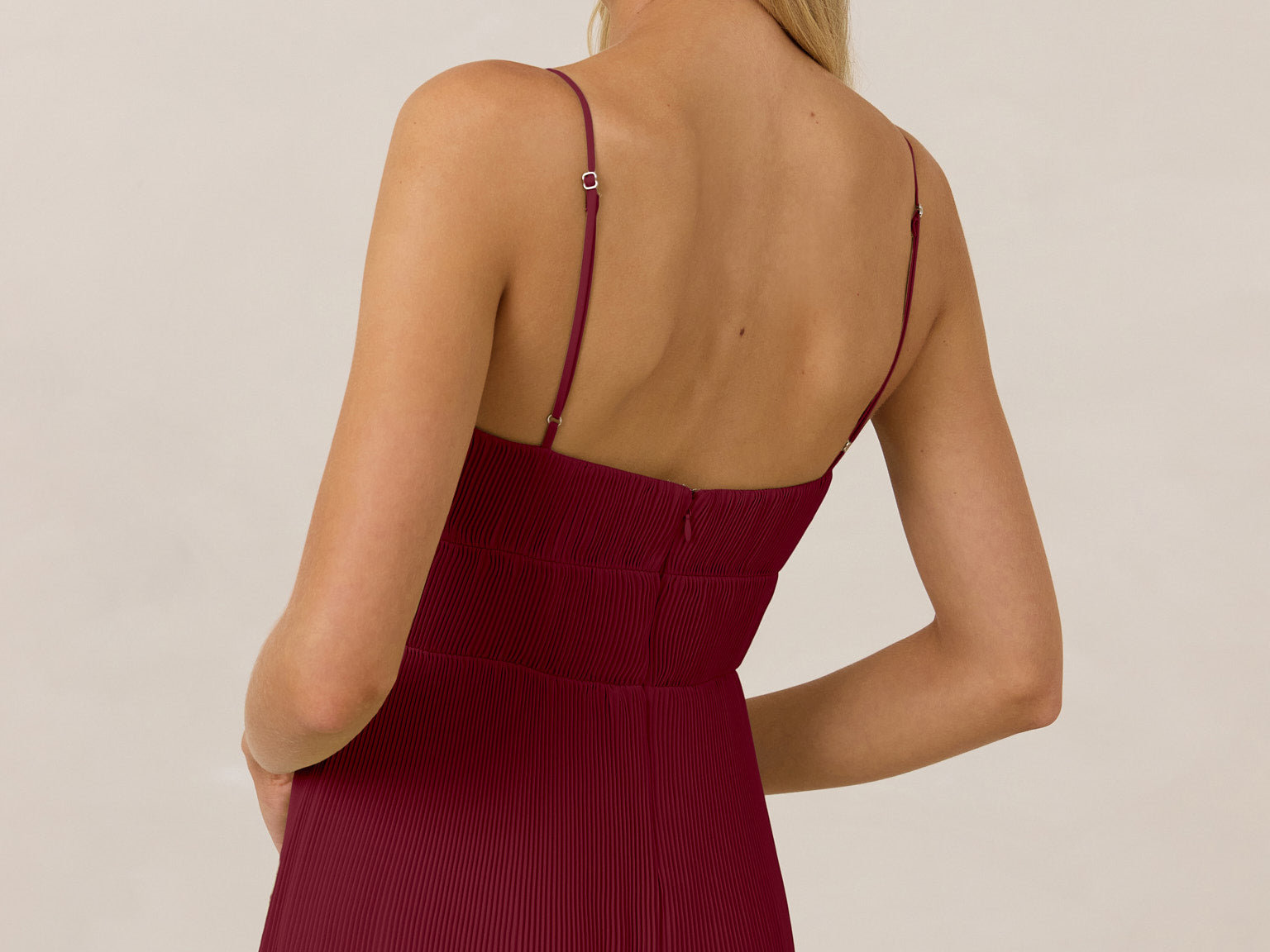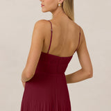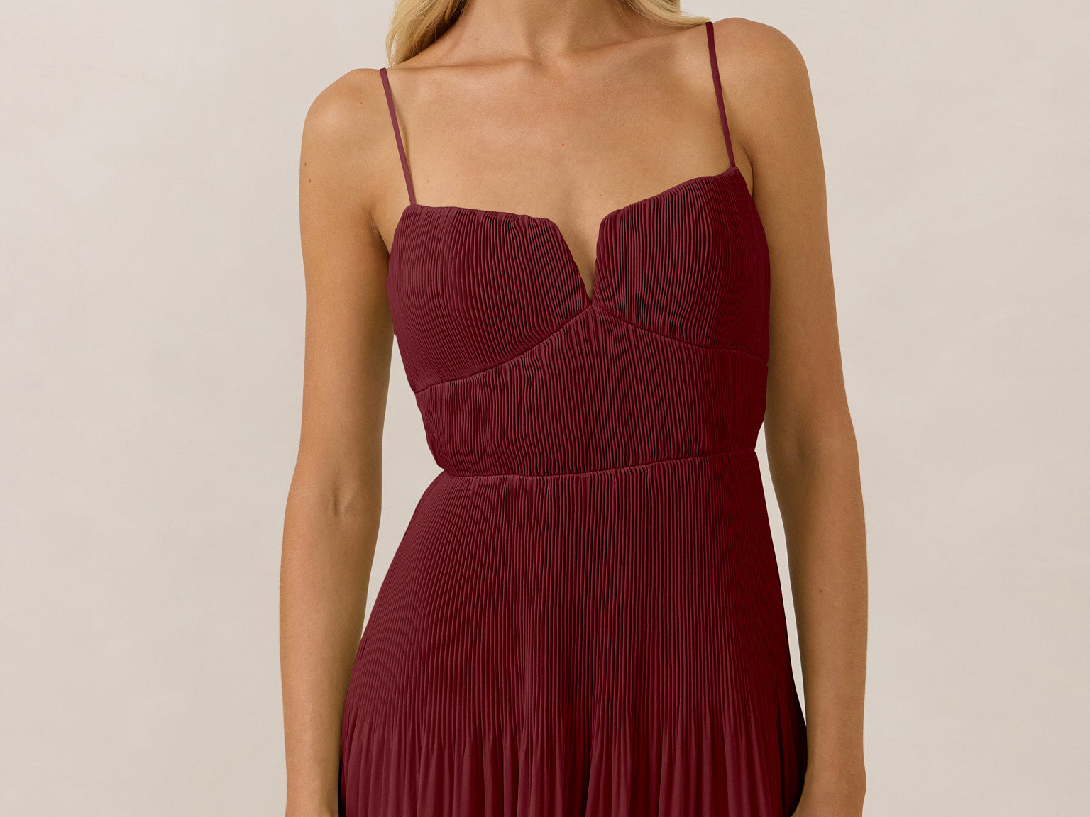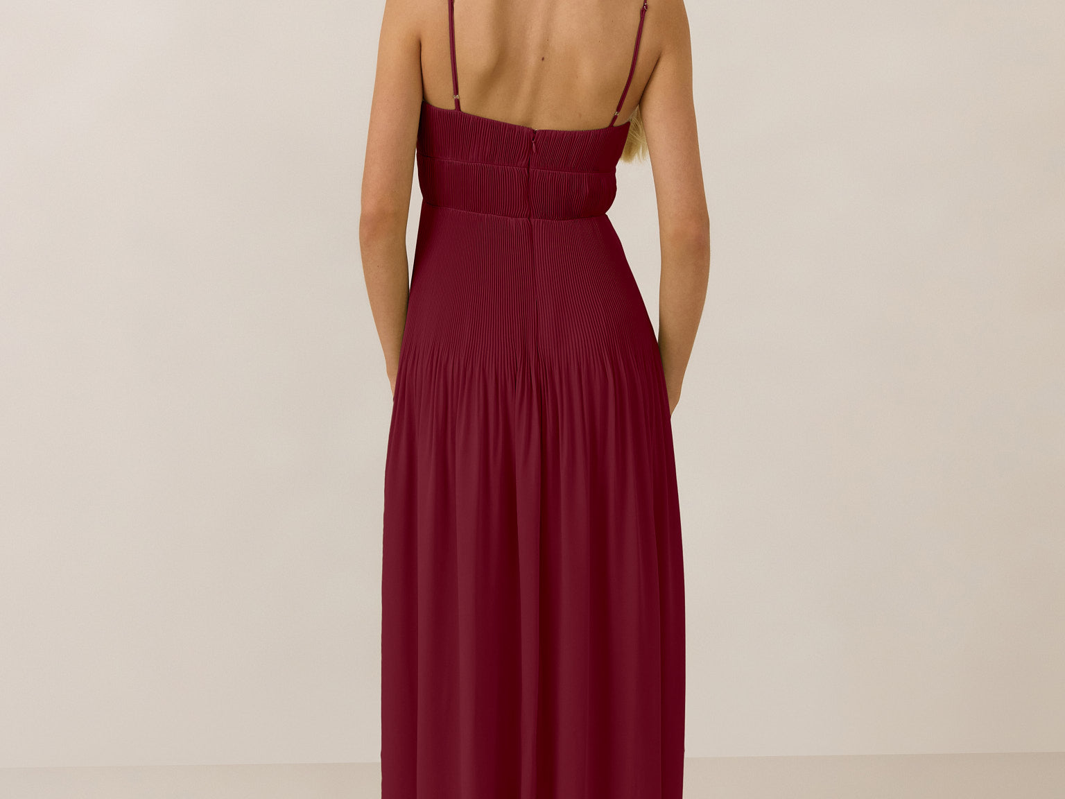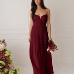 The Lena dress, crafted from airy chiffon, is a harmonious blend of elegance and movement. Its softly pleated skirt drapes gracefully, creating an ethereal flow with every stride. A modern touch is added by the structured V-wire neckline, which not only provides support but also subtly enhances the romantic silhouette.
