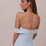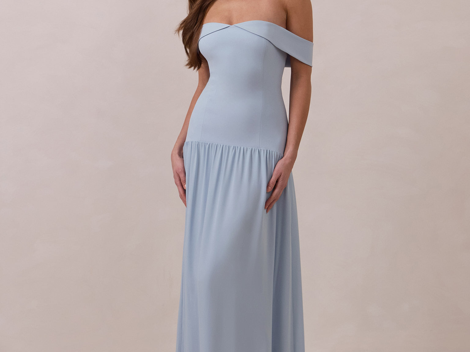 Turn heads in this breathtaking dress, featuring a romantic off-the-shoulder sweetheart neckline that elegantly frames your collarbones. The sleek, structured bodice flows seamlessly into a dropped waist and a pleated, airy skirt, creating a look that’s effortlessly sophisticated and perfectly made for dancing the night away.