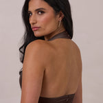 • Halter neckline with button closure