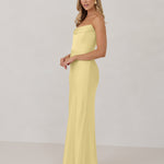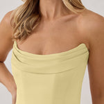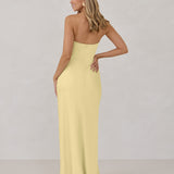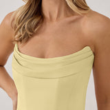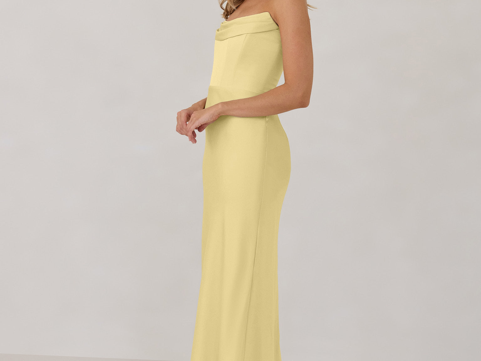 An elegant strapless design with a modern edge, this dress features an exaggerated pointed neckline and a boned bodice for a structured, flattering fit. The bias-cut skirt creates a smooth, elongating silhouette, while the full-length design makes it perfect for galas and formal occasions.