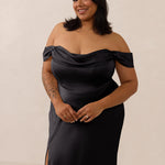 The Prescott Dress is the definition of effortless elegance. Designed with a soft draped chiffon neckline and delicate off-the-shoulder straps, it strikes the perfect balance between romance and refinement. For added versatility, the straps are removable, allowing you to easily switch up your look.