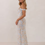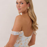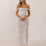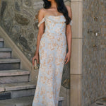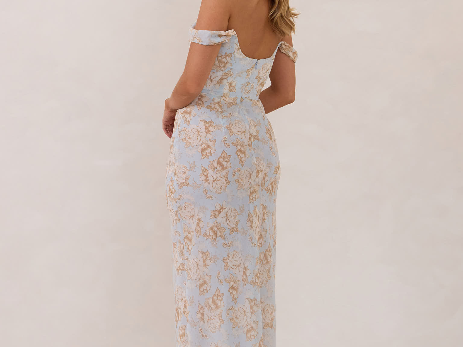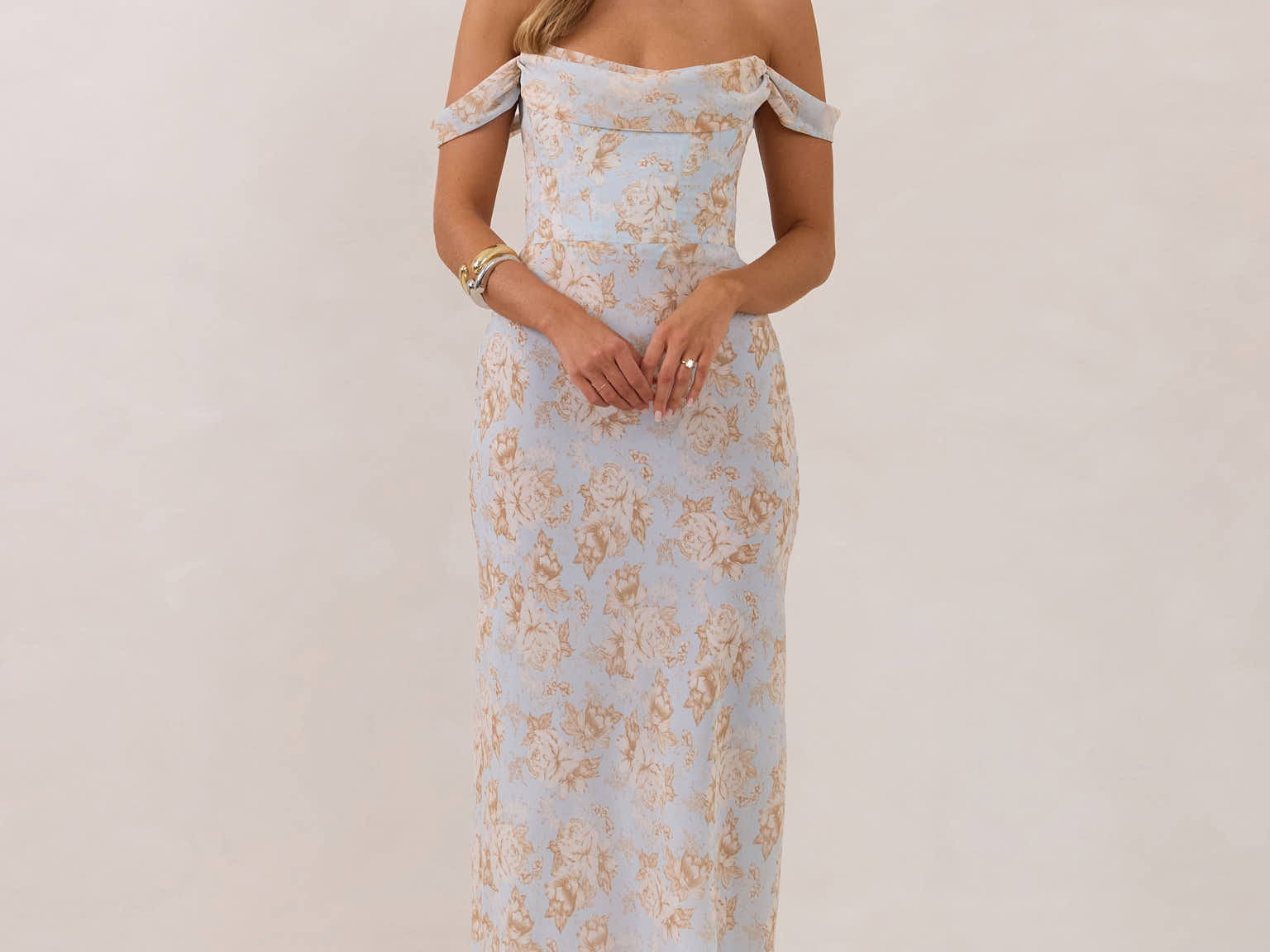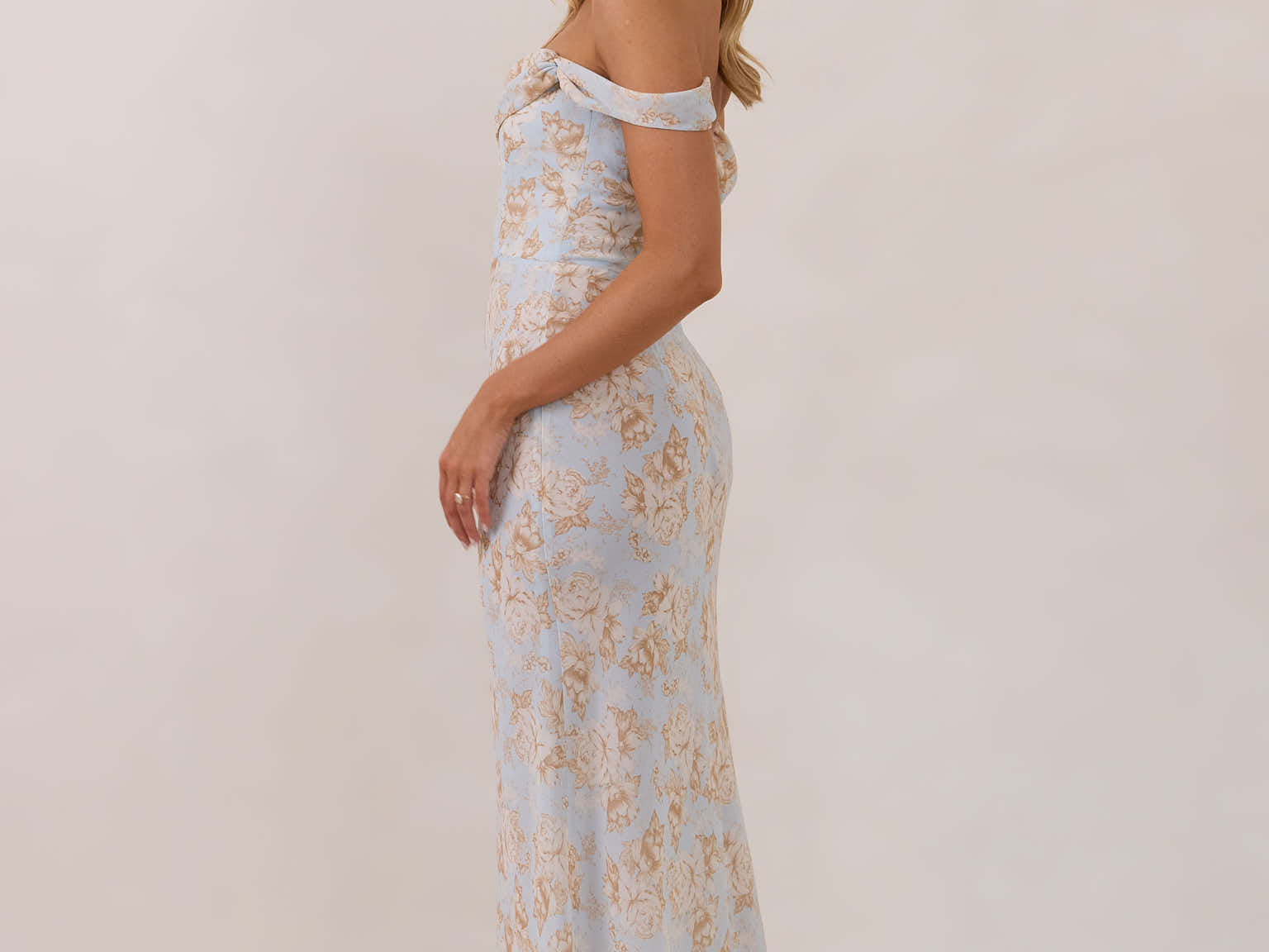 The Sutton Dress is the definition of effortless elegance. Designed with a soft draped chiffon neckline and delicate off-the-shoulder sleeves, it strikes the perfect balance between romance and refinement.