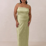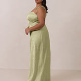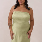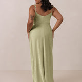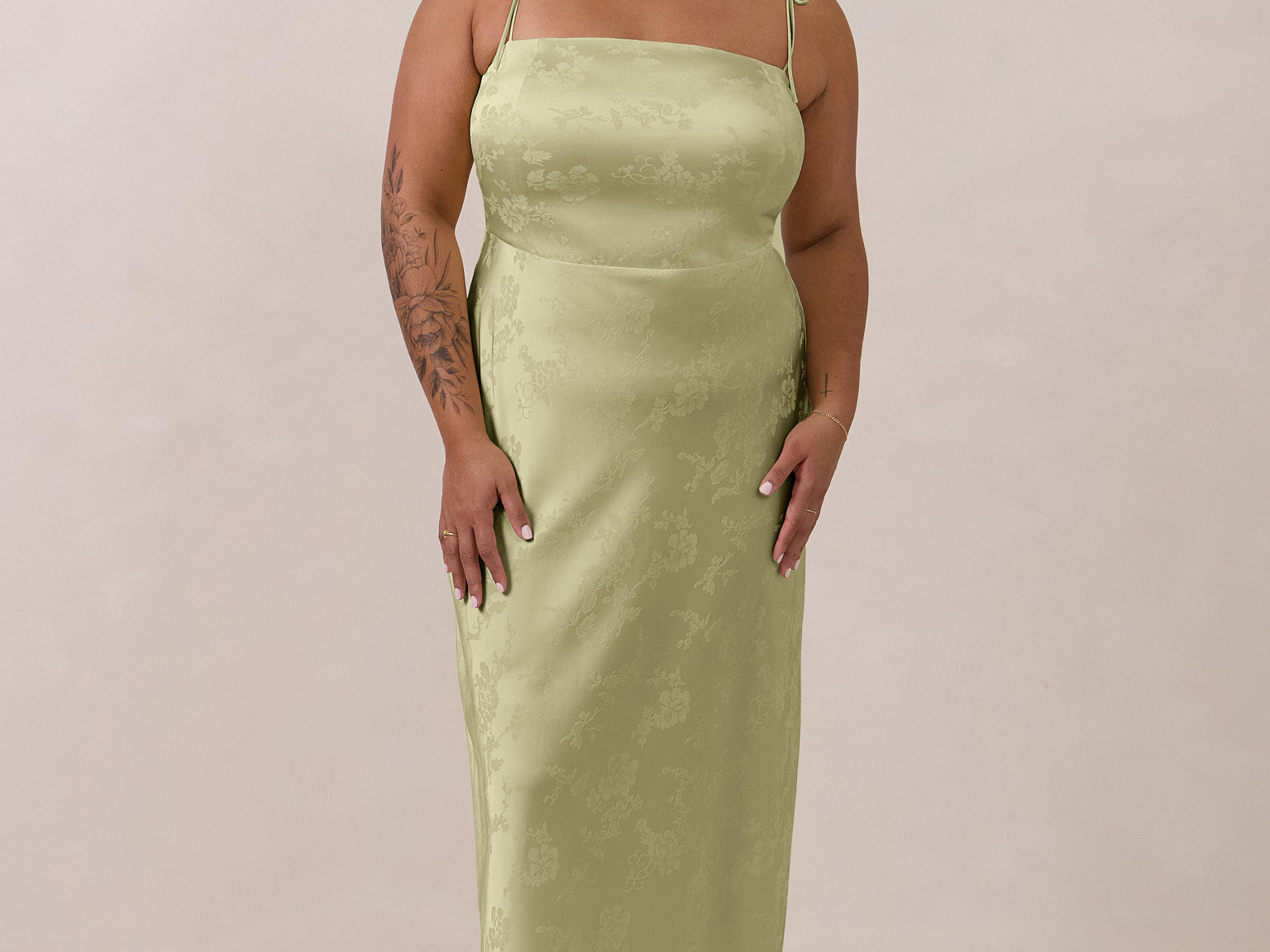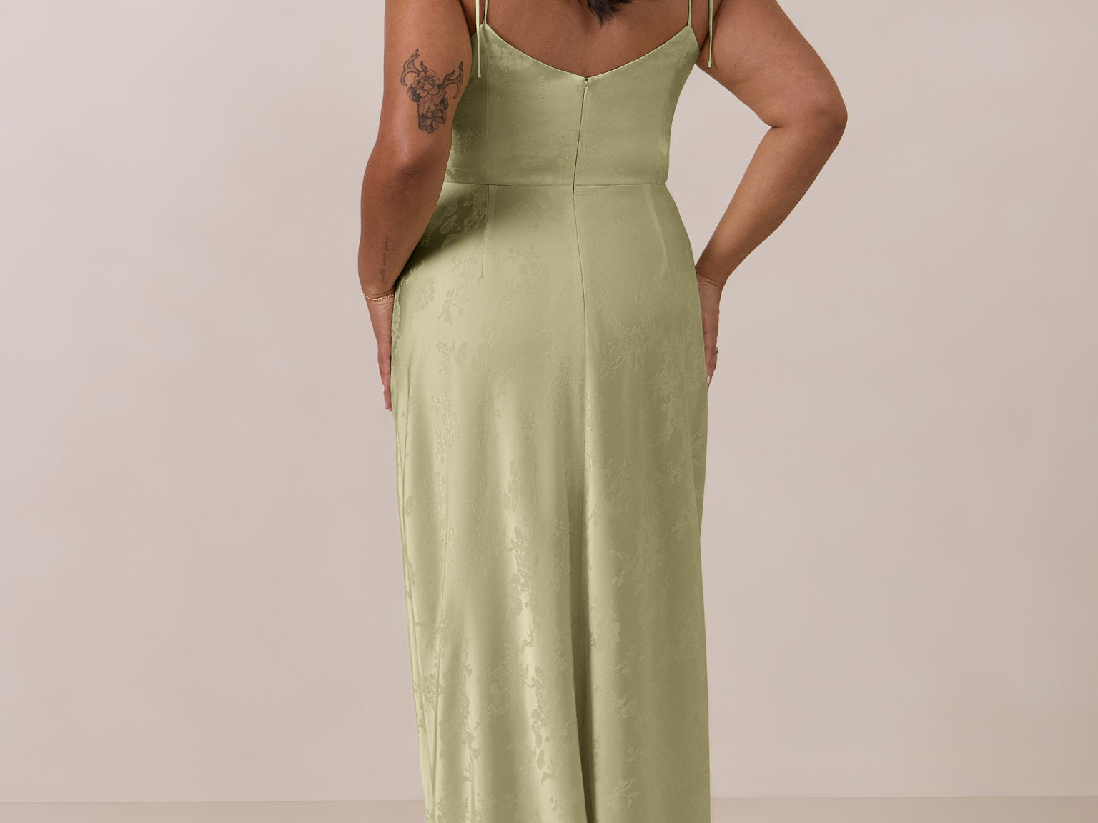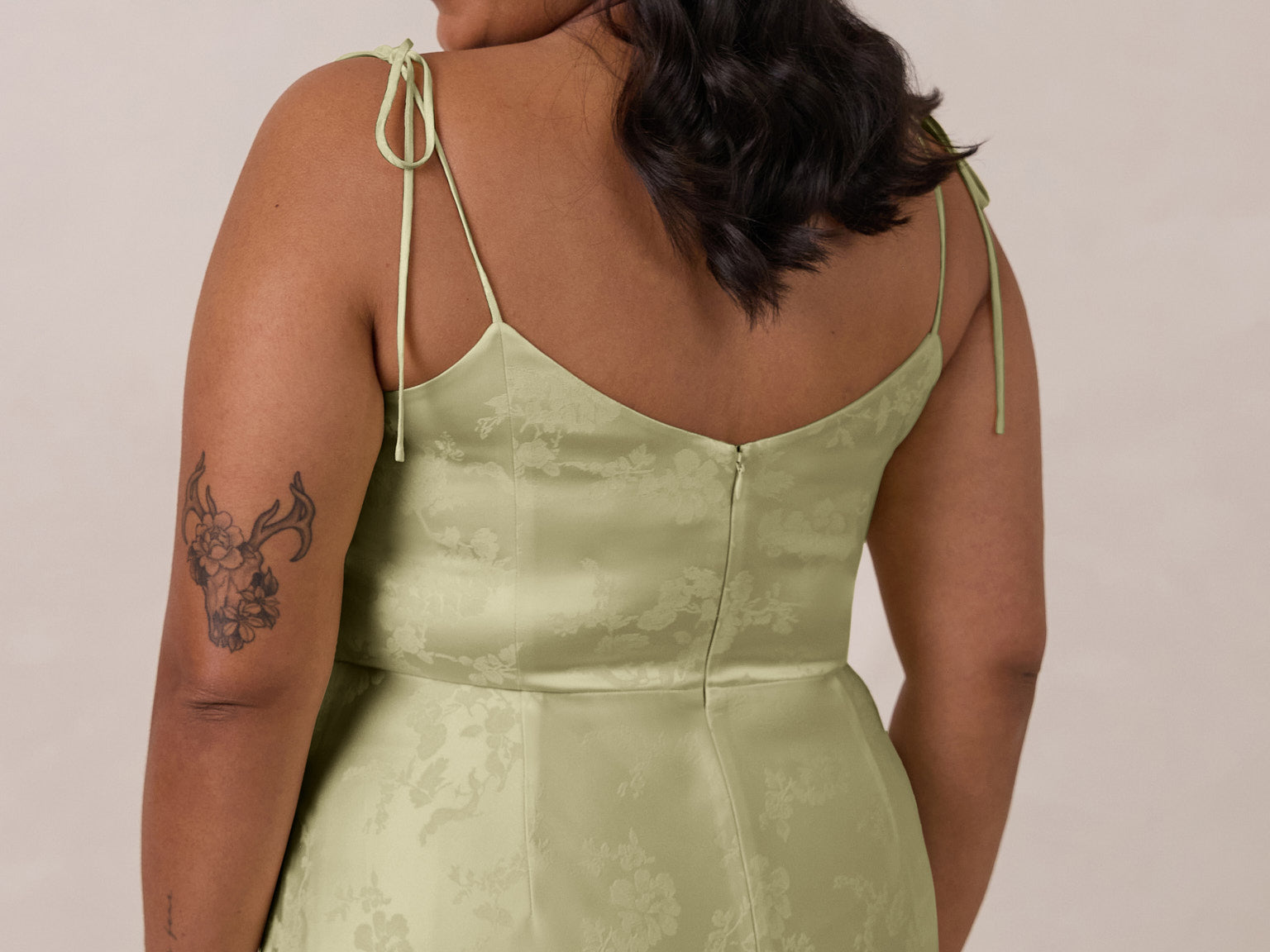 The Beckett dress embodies understated sophistication. Its floor-grazing silhouette flows effortlessly, complemented by a subtle back slit for added movement and a modern touch. Featuring a softly structured bodice and adjustable tie straps, it ensures both comfort and a tailored fit, making it perfect for any occasion requiring quiet confidence.
