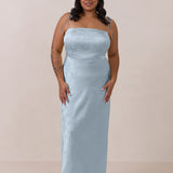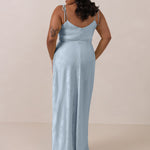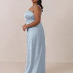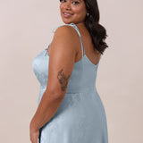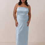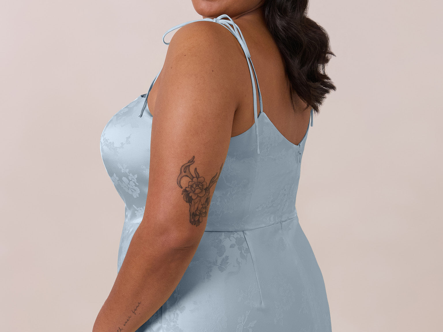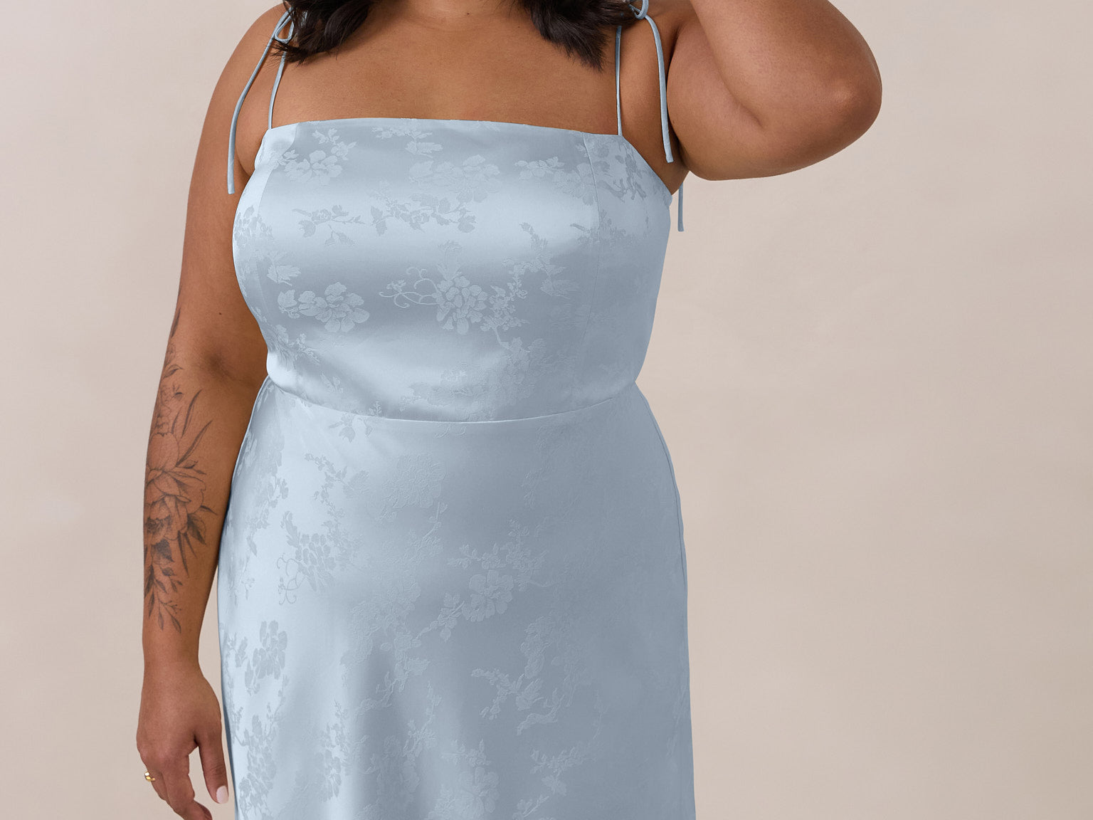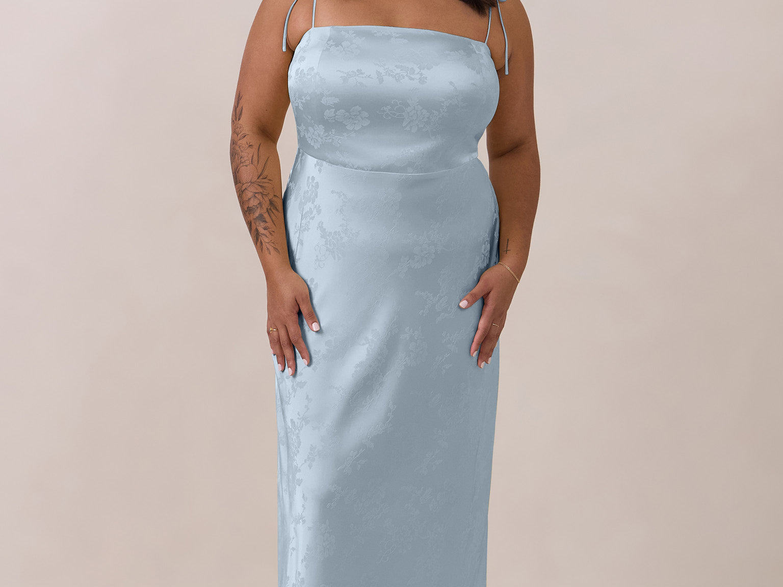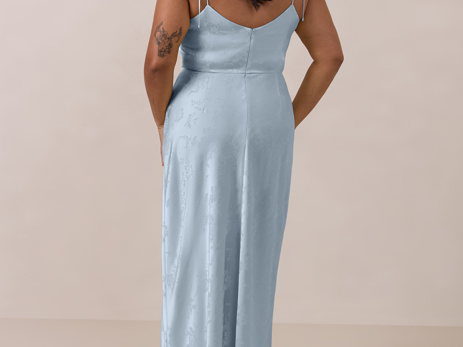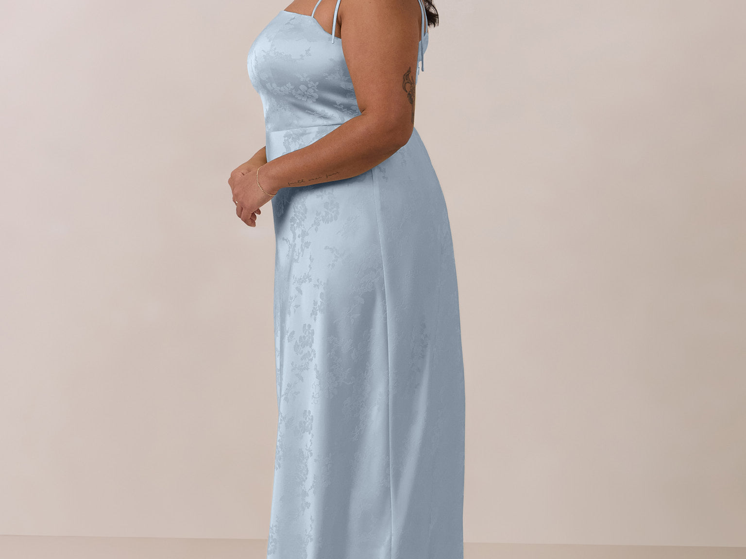The Beckett dress embodies understated sophistication. Its floor-grazing silhouette flows effortlessly, complemented by a subtle back slit for added movement and a modern touch. Featuring a softly structured bodice and adjustable tie straps, it ensures both comfort and a tailored fit, making it perfect for any occasion requiring quiet confidence.