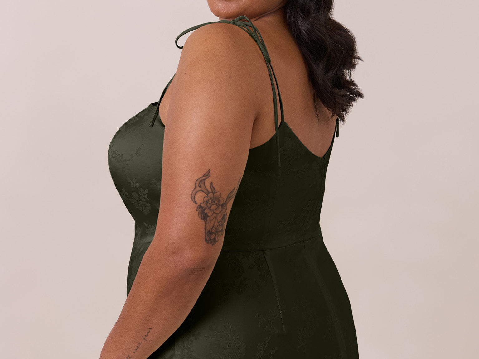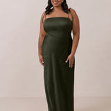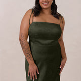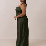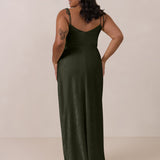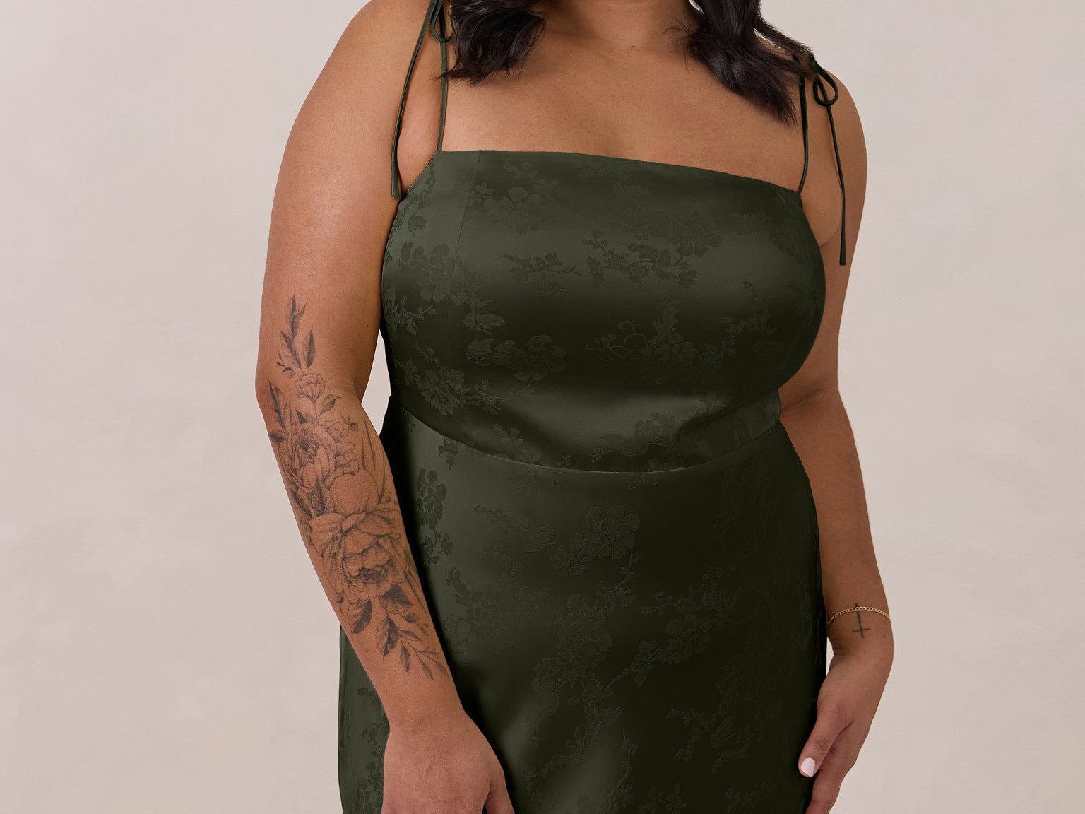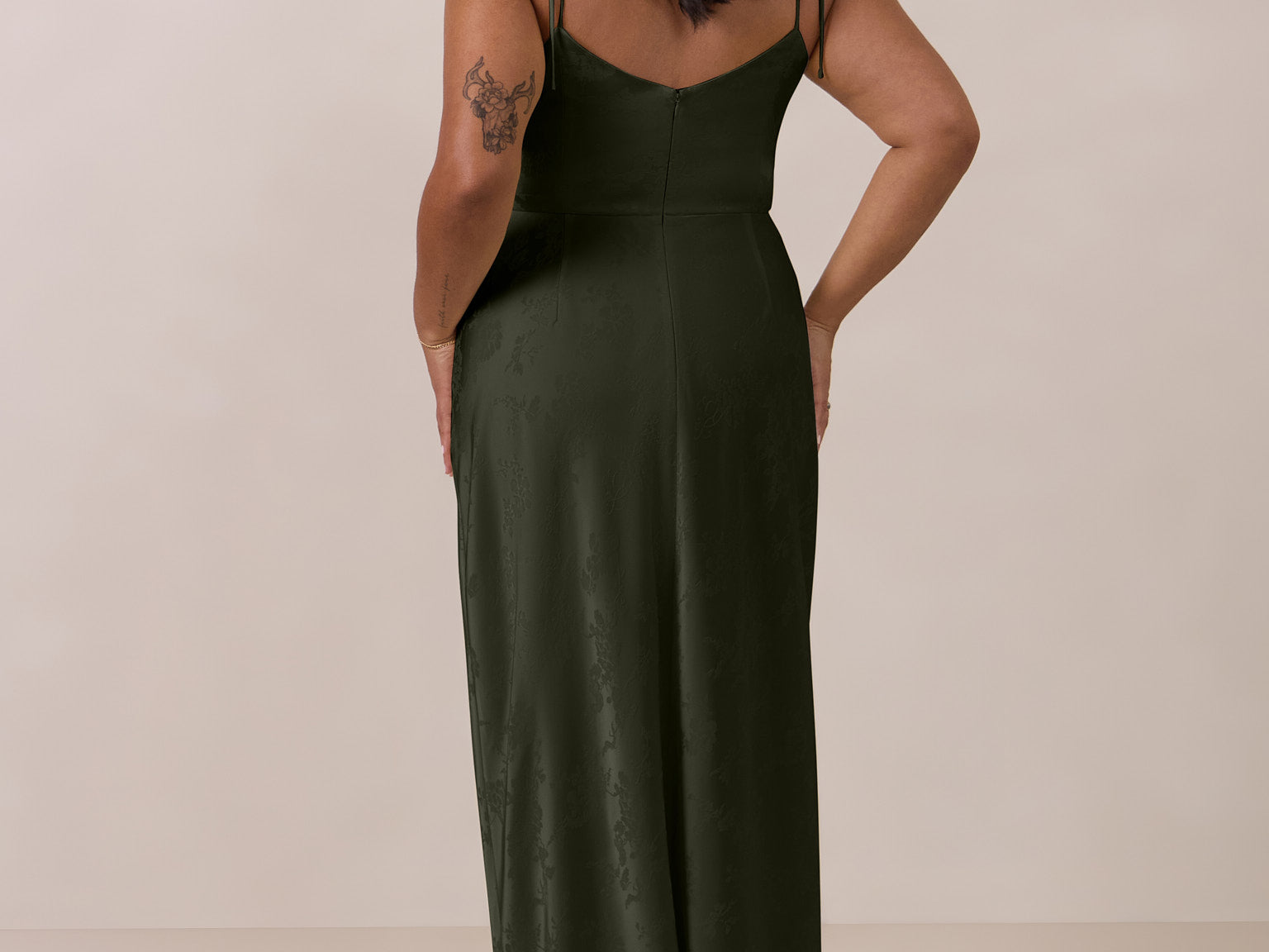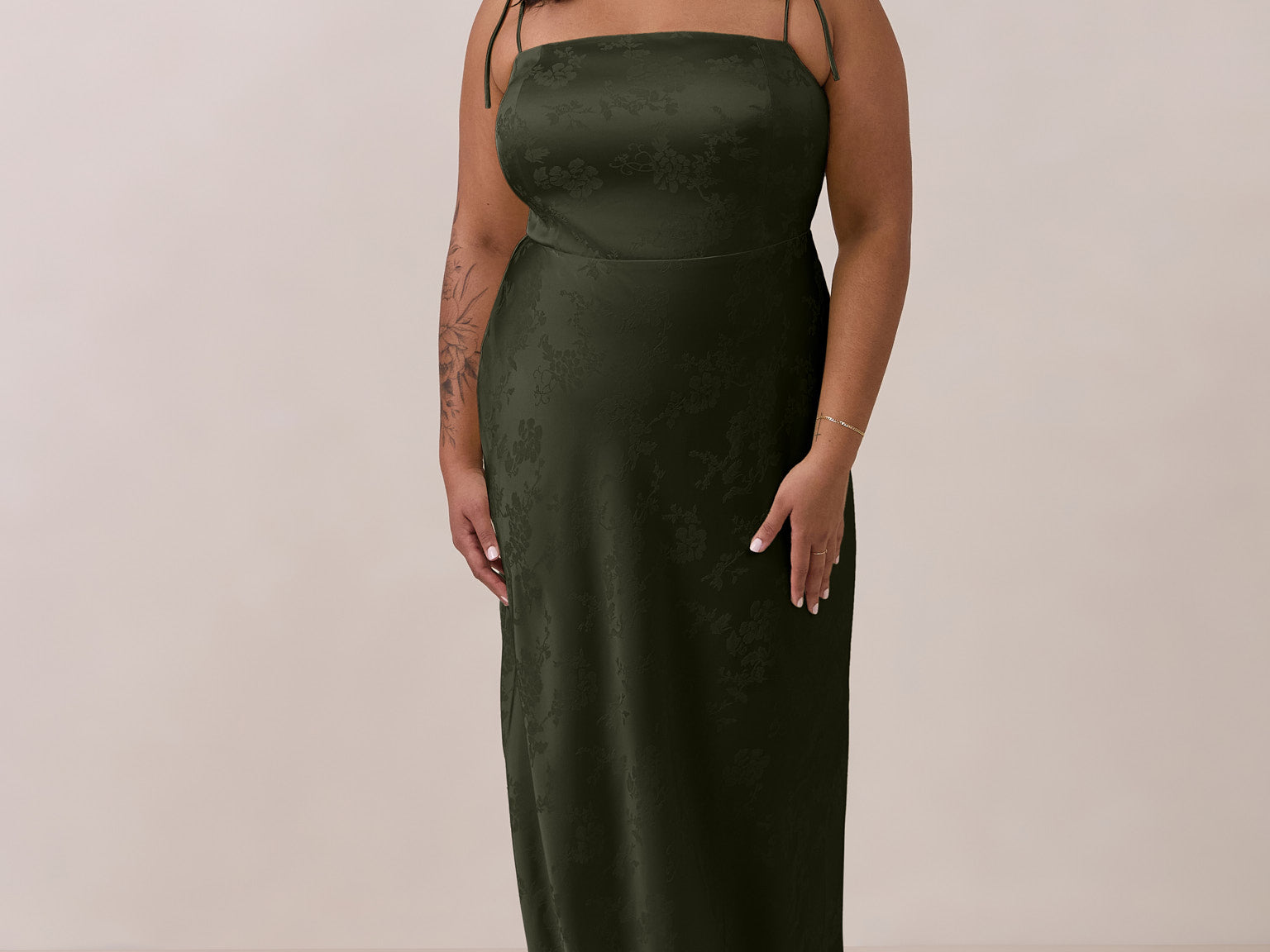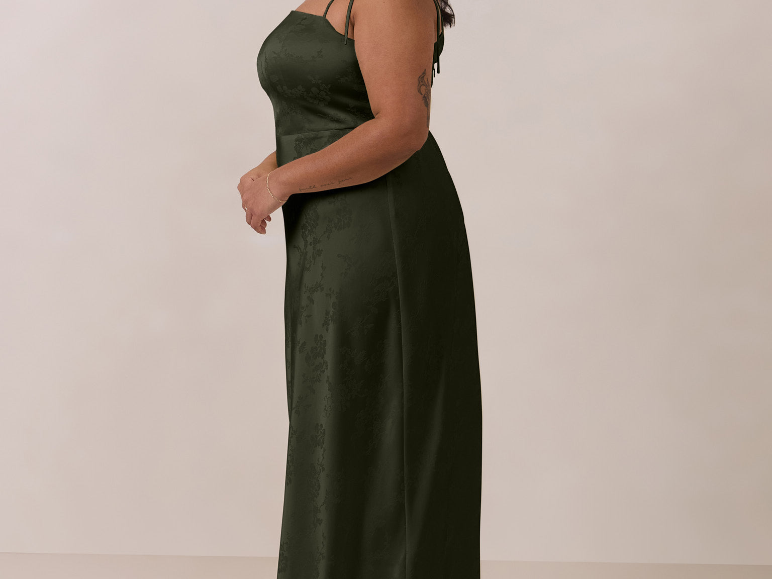 The Beckett dress embodies understated sophistication. Its floor-grazing silhouette flows effortlessly, complemented by a subtle back slit for added movement and a modern touch. Featuring a softly structured bodice and adjustable tie straps, it ensures both comfort and a tailored fit, making it perfect for any occasion requiring quiet confidence.