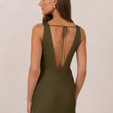 - Open back with tie detail