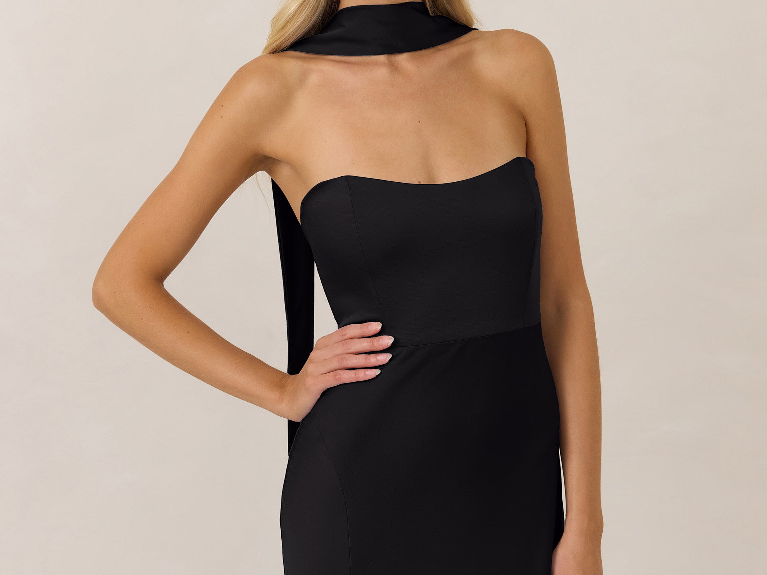 With an emphasis on the details, this satin maxi dress is cut on the bias for an ultra-flattering drape that skims the body perfectly. A subtle, hip-grazing slit adds movement and a touch of leg, while removable straps offer versatility—wear it strapless for a sleek look or with straps for added support and structure.