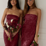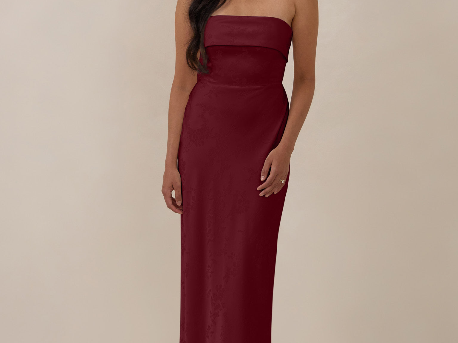 Our Jacquard is a medium-weight fabric that offers a structured feel and elegant floral patterns. It's blended with satin for a subtle sheen and soft, luxurious finish. This fabric holds its shape beautifully and drapes gracefully for a polished, tailored look, with very little stretch.