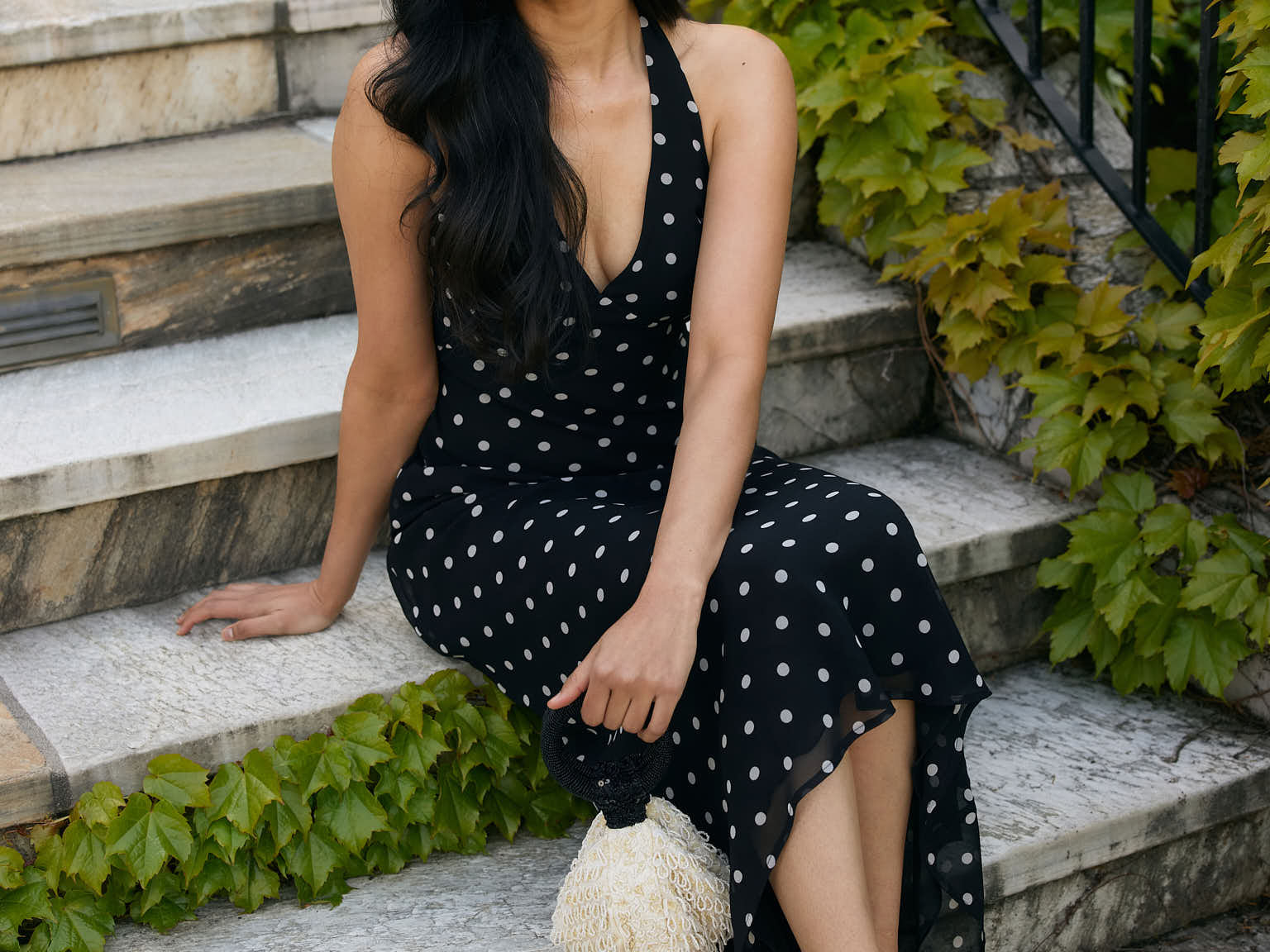 - Halter neckline with open back