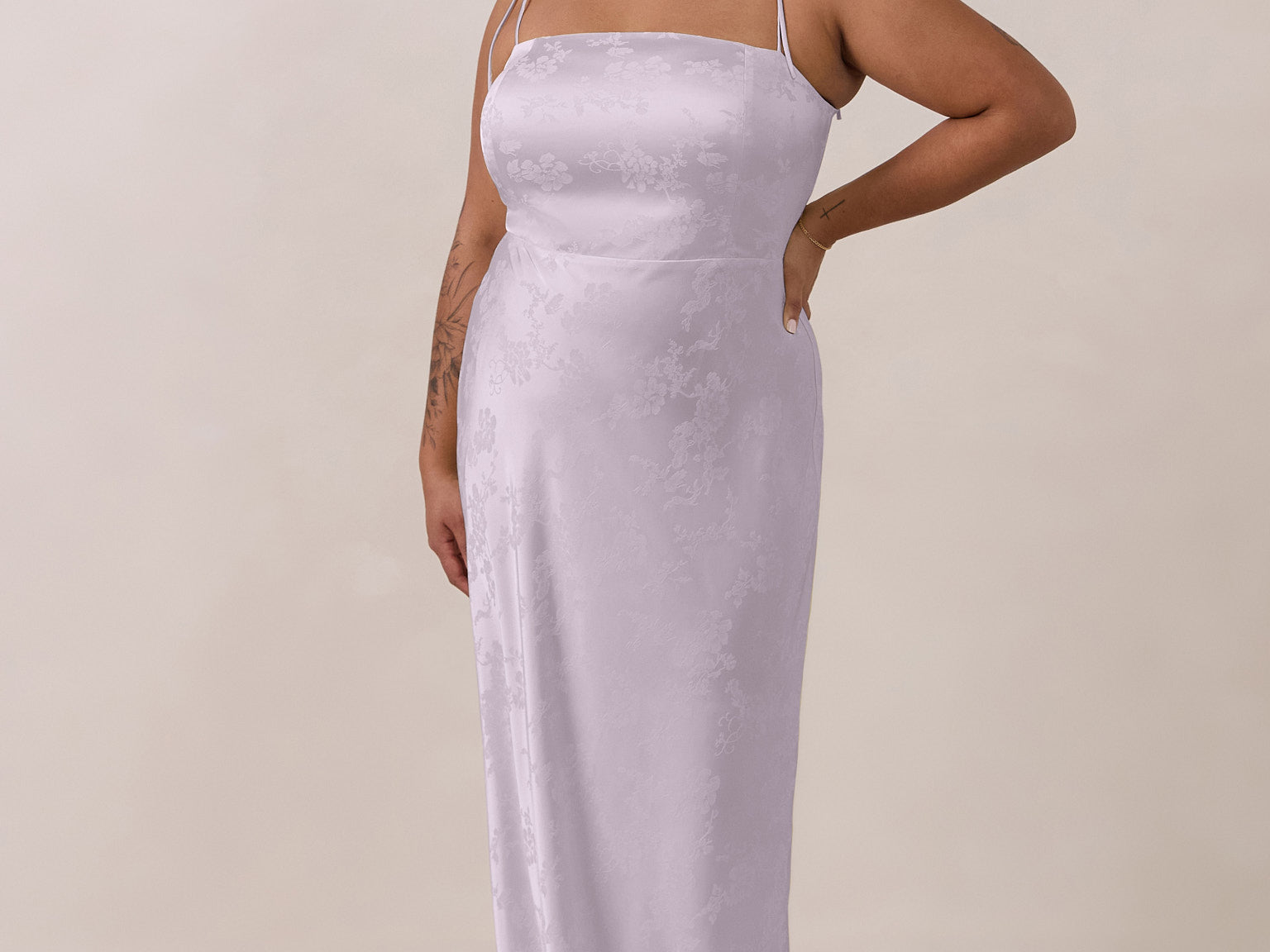 The Beckett dress embodies understated sophistication. Its floor-grazing silhouette flows effortlessly, complemented by a subtle back slit for added movement and a modern touch. Featuring a softly structured bodice and adjustable tie straps, it ensures both comfort and a tailored fit, making it perfect for any occasion requiring quiet confidence.