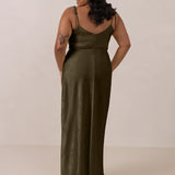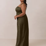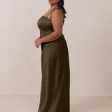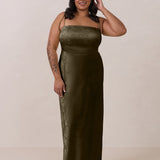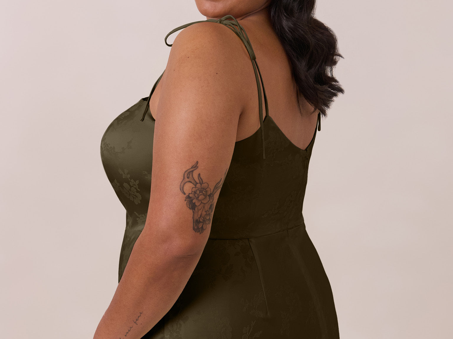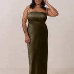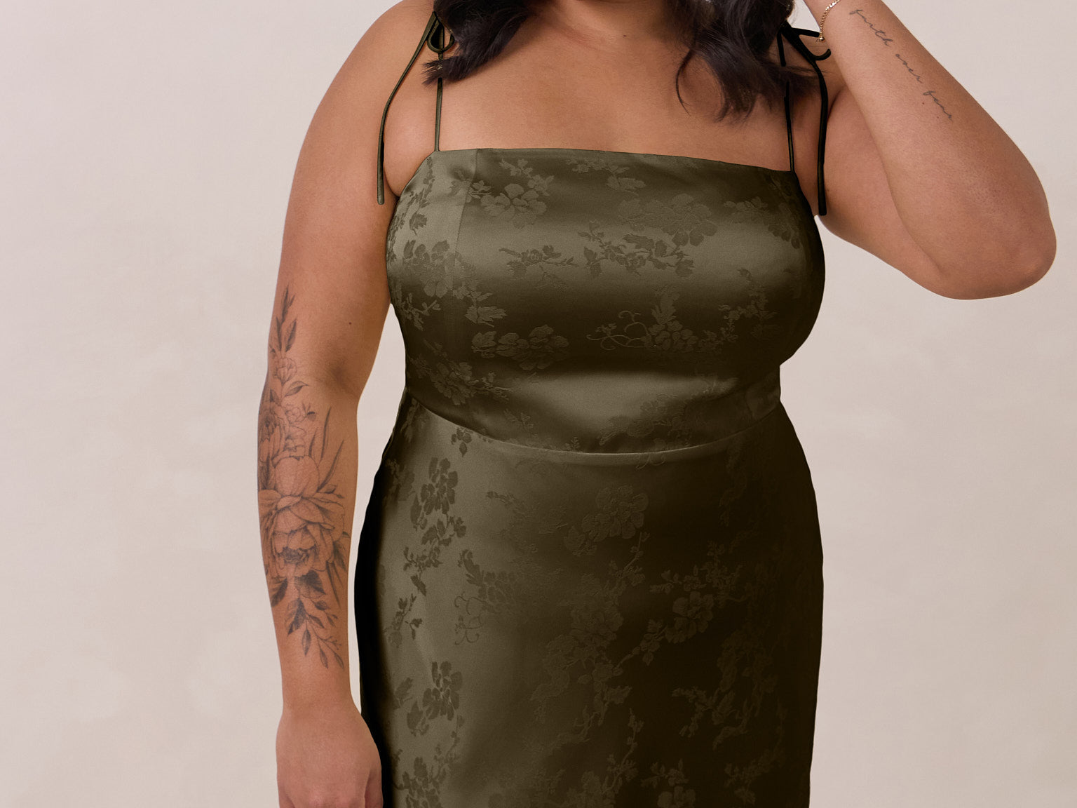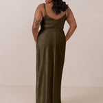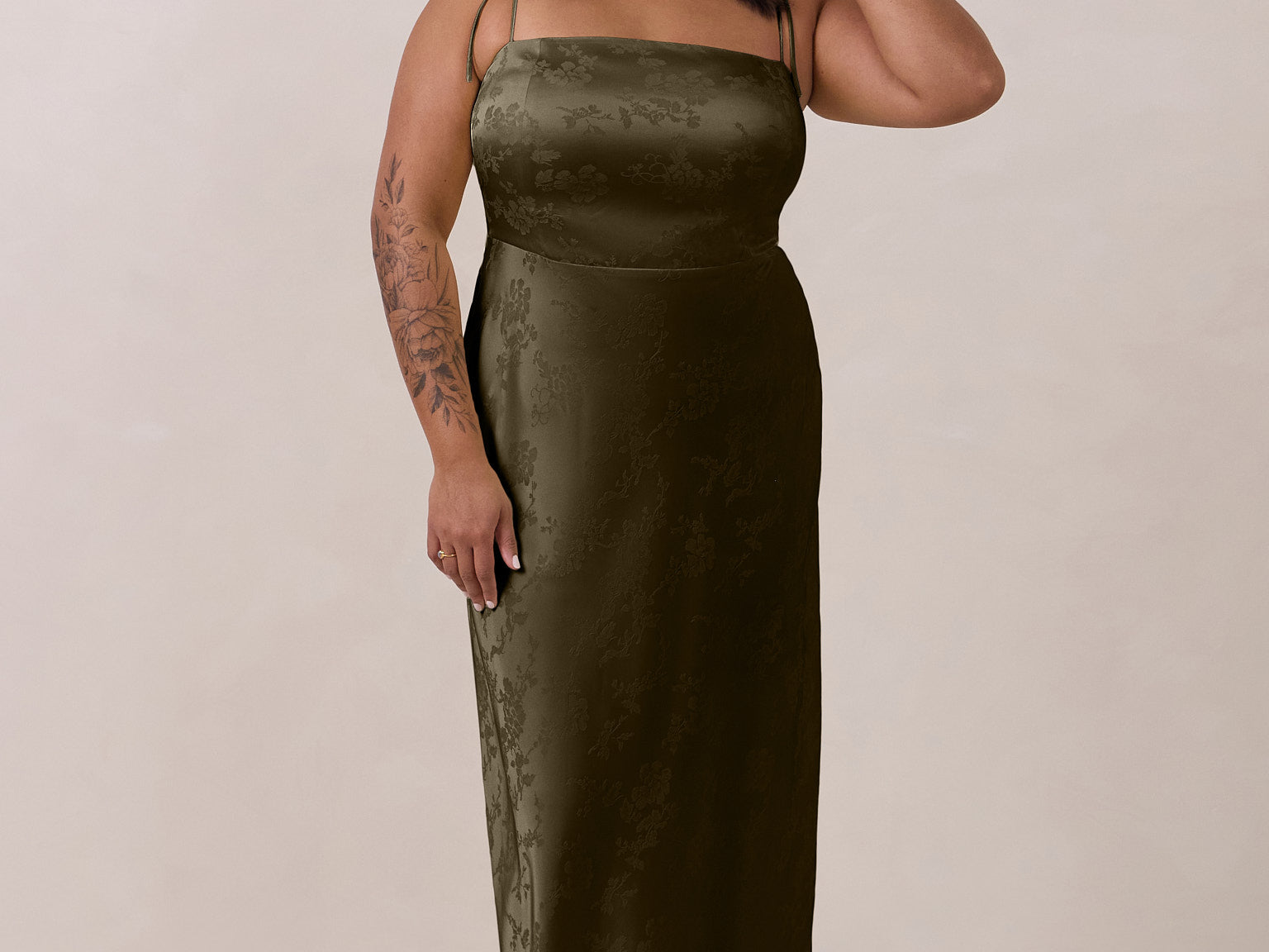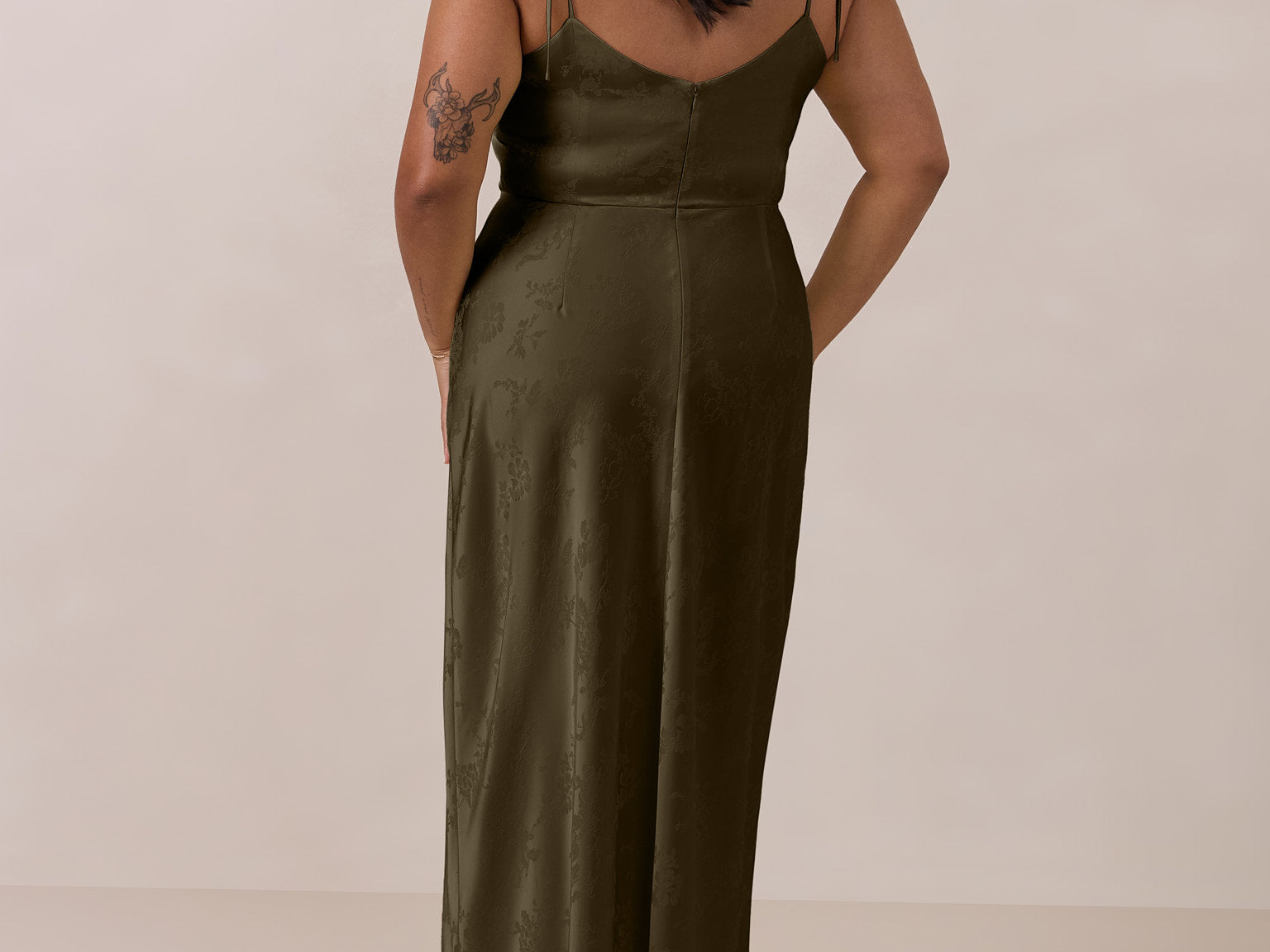The Beckett dress embodies understated sophistication. Its floor-grazing silhouette flows effortlessly, complemented by a subtle back slit for added movement and a modern touch. Featuring a softly structured bodice and adjustable tie straps, it ensures both comfort and a tailored fit, making it perfect for any occasion requiring quiet confidence.