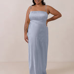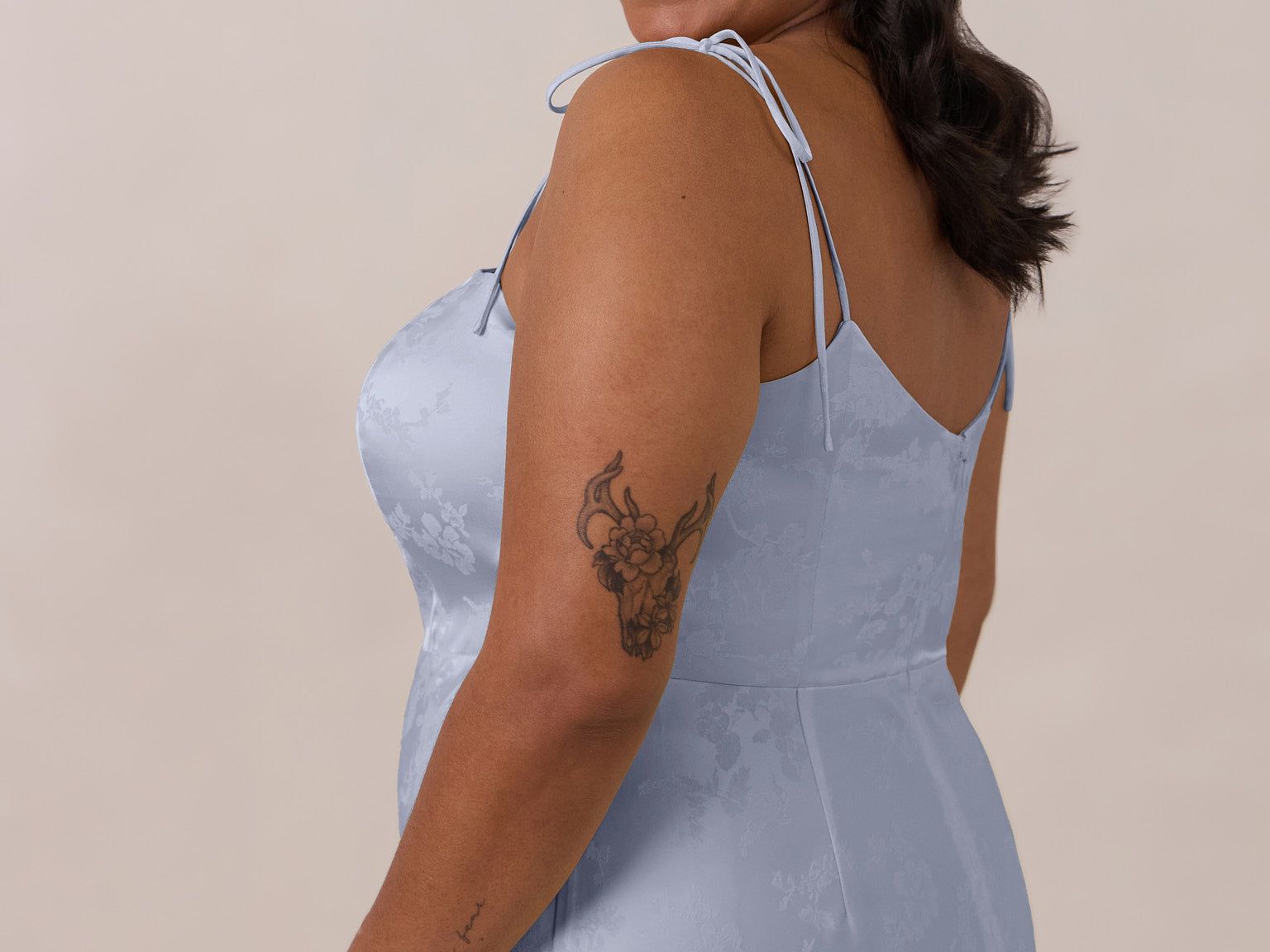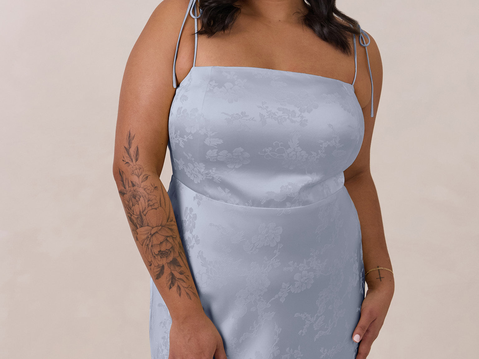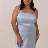 The Beckett dress embodies understated sophistication. Its floor-grazing silhouette flows effortlessly, complemented by a subtle back slit for added movement and a modern touch. Featuring a softly structured bodice and adjustable tie straps, it ensures both comfort and a tailored fit, making it perfect for any occasion requiring quiet confidence.