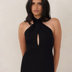 The Emery dress redefines timeless elegance with a contemporary twist. Crafted from our signature bubble satin, this full-length dress features a flattering cross-front halter neckline, creating soft drapes and a delicate keyhole detail for a touch of allure. The bias-cut skirt gracefully skims the body, ensuring comfort and a flawless silhouette that you'll want to wear repeatedly.