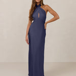The Emery dress redefines timeless elegance with a contemporary twist. Crafted from our signature bubble satin, this full-length dress features a flattering cross-front halter neckline, creating soft drapes and a delicate keyhole detail for a touch of allure. The bias-cut skirt gracefully skims the body, ensuring comfort and a flawless silhouette that you'll want to wear repeatedly.
