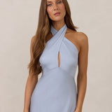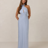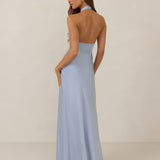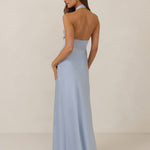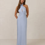 The Emery dress redefines timeless elegance with a contemporary twist. Crafted from our signature bubble satin, this full-length dress features a flattering cross-front halter neckline, creating soft drapes and a delicate keyhole detail for a touch of allure. The bias-cut skirt gracefully skims the body, ensuring comfort and a flawless silhouette that you'll want to wear repeatedly.