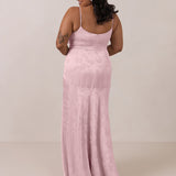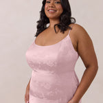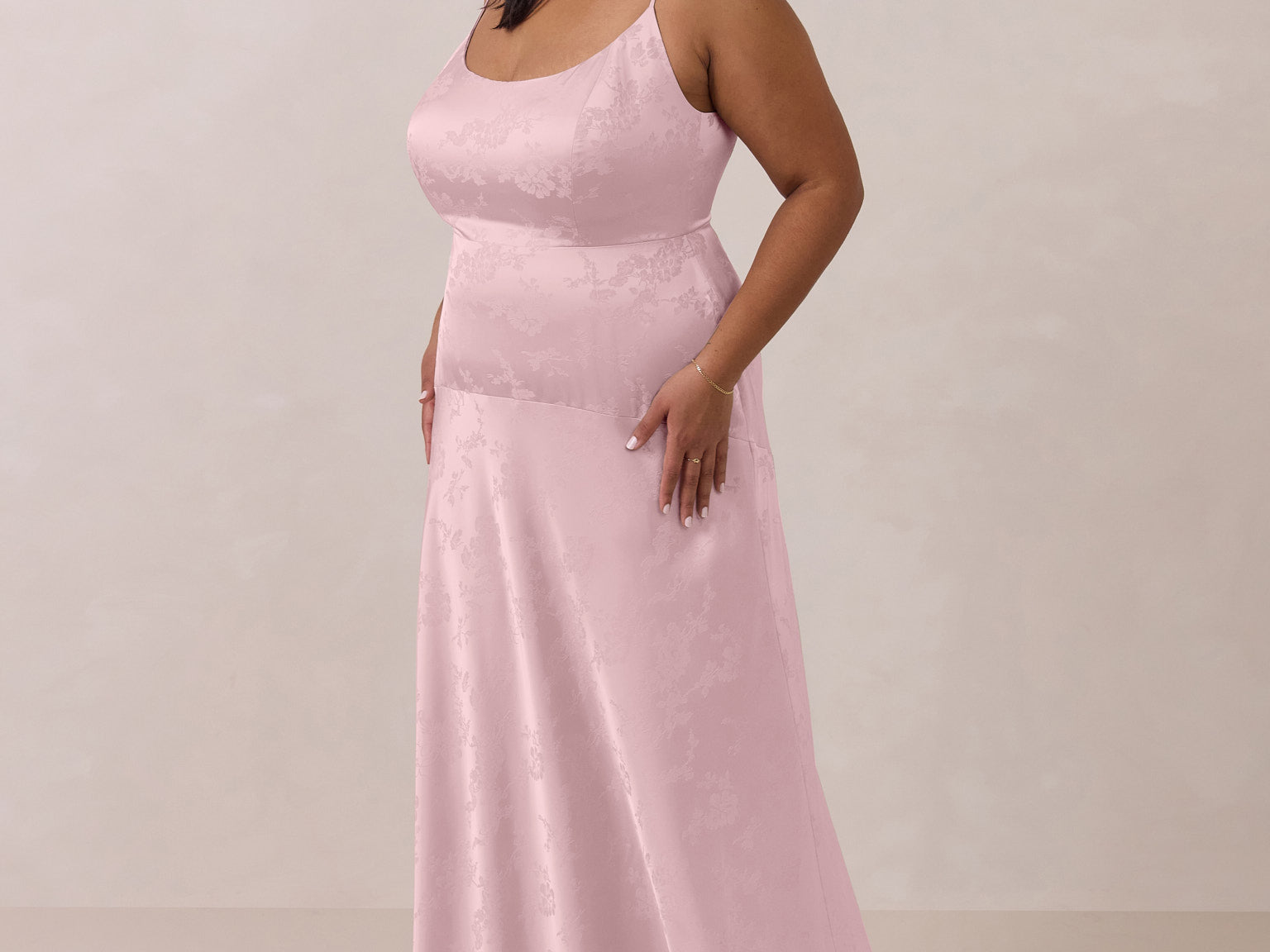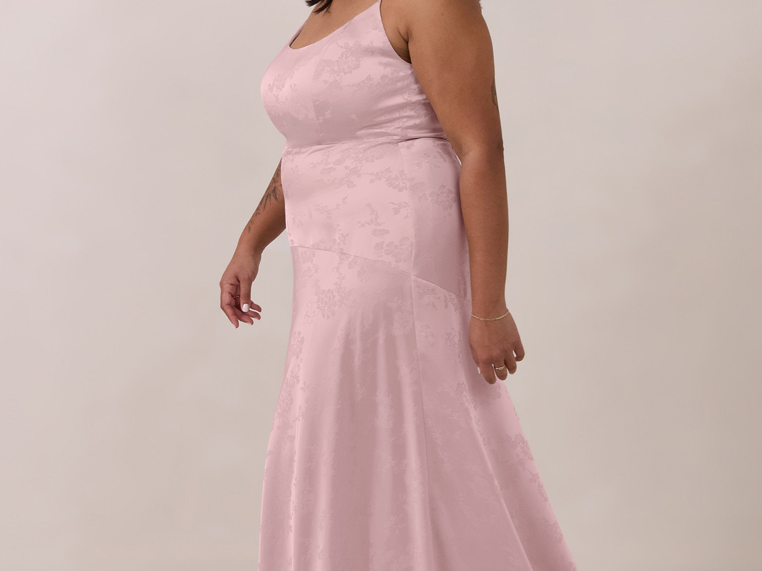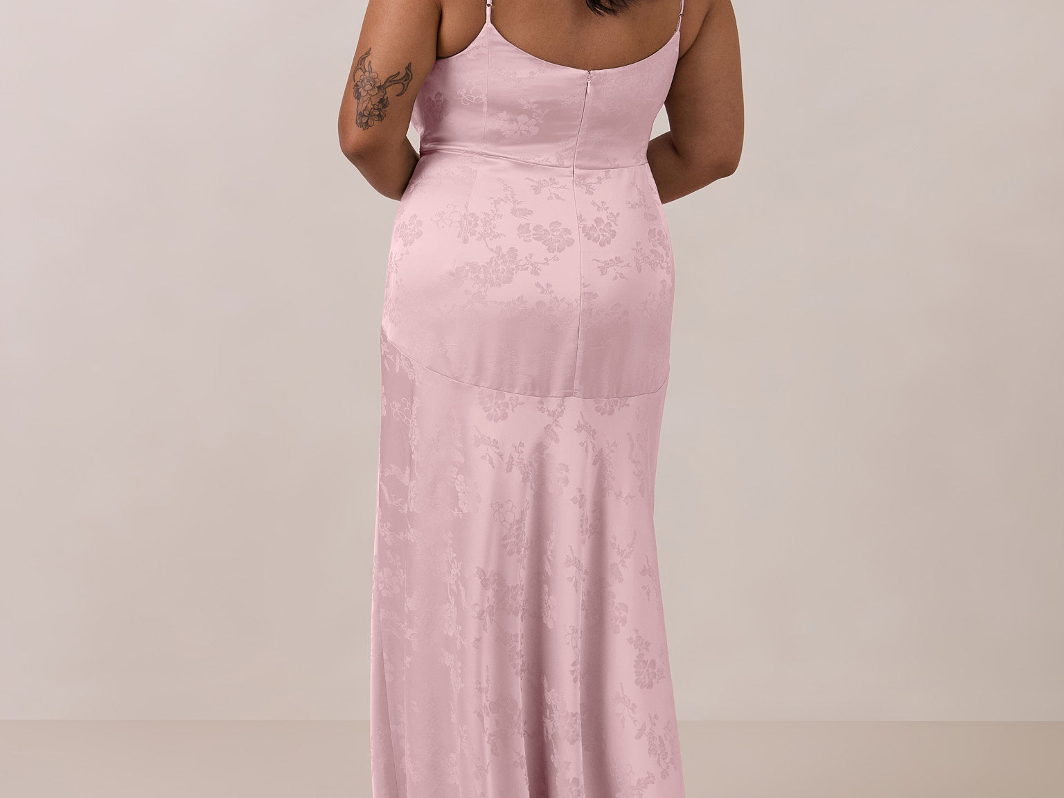 Crafted from luxurious Jacquard satin, this full-length dress features adjustable straps and a flattering drop waist, creating an elegant silhouette with timeless appeal. The scoop neckline and back add a delicate, feminine touch, while the bias-cut skirt flows gracefully to the floor, combining sophistication and comfort for a truly captivating look.
