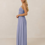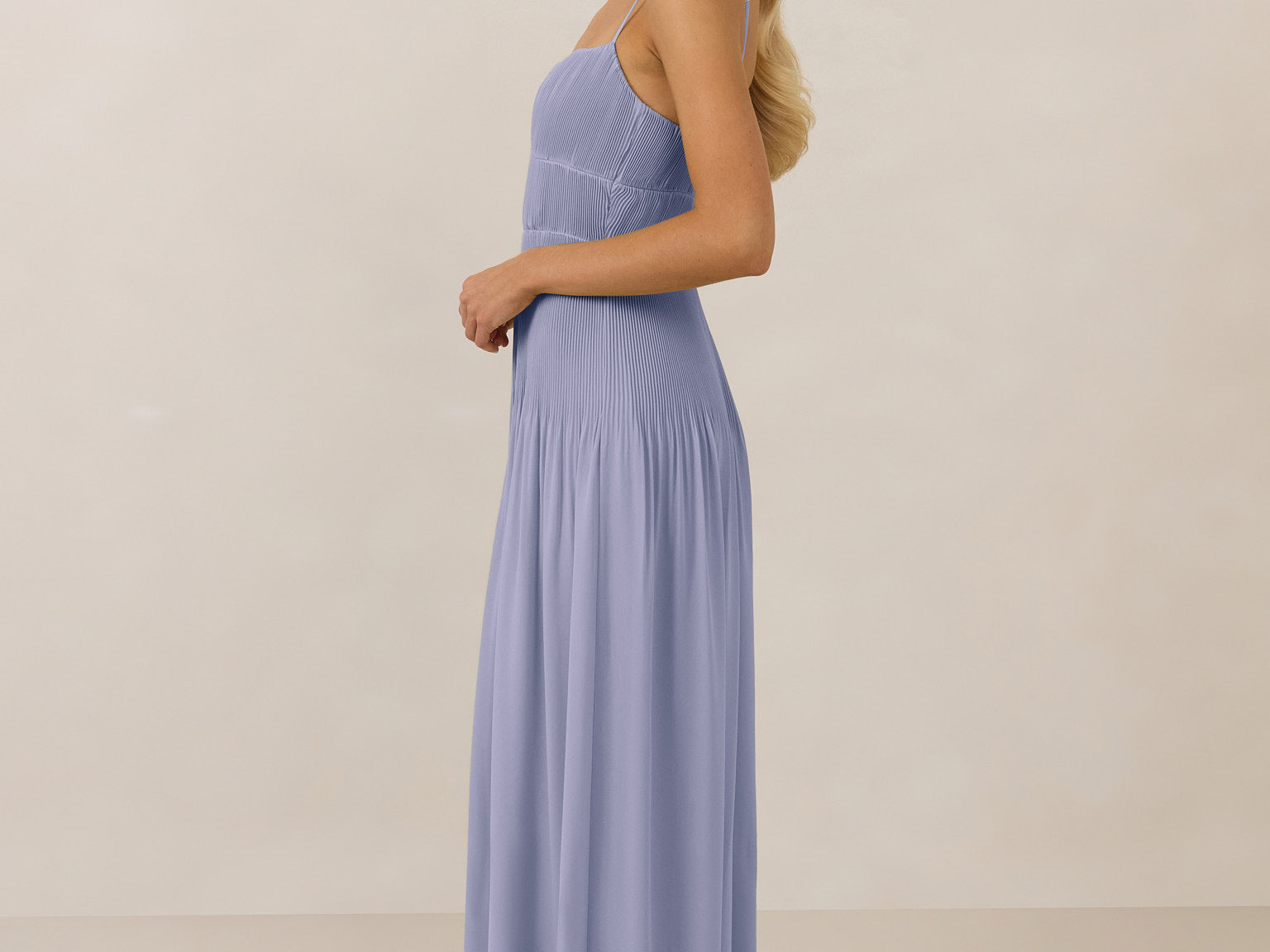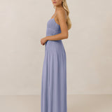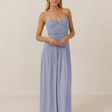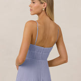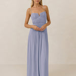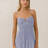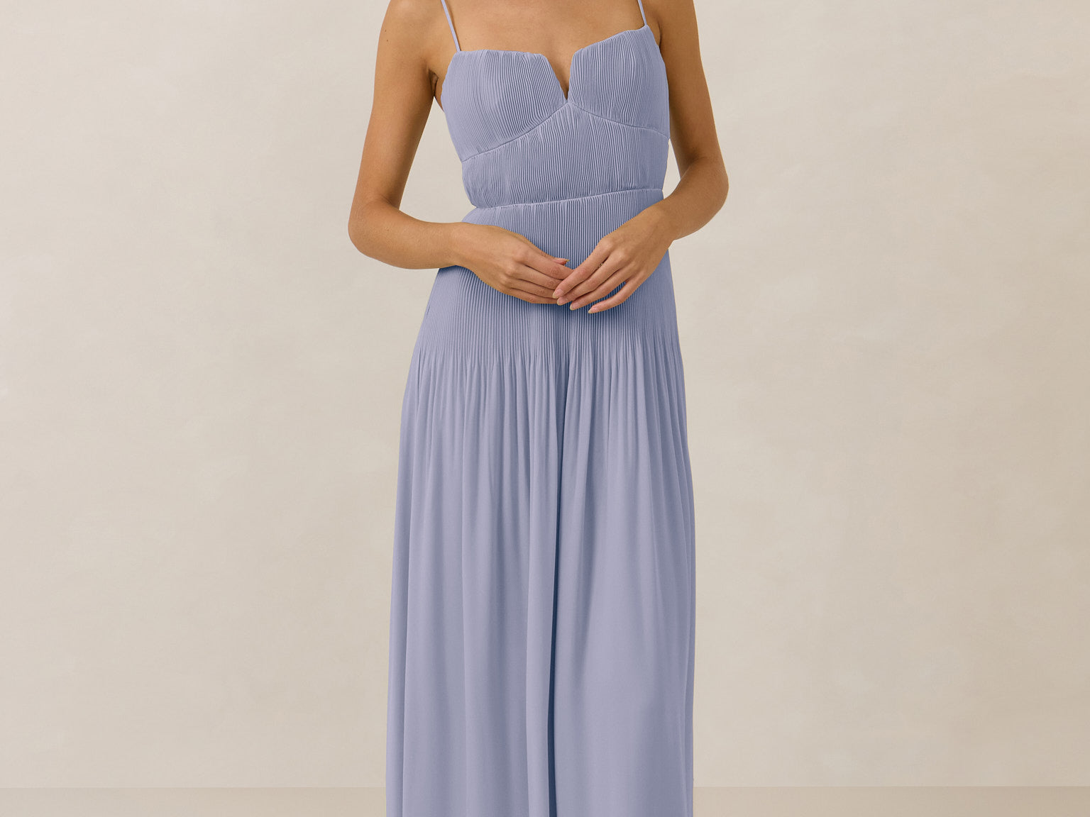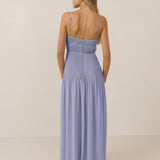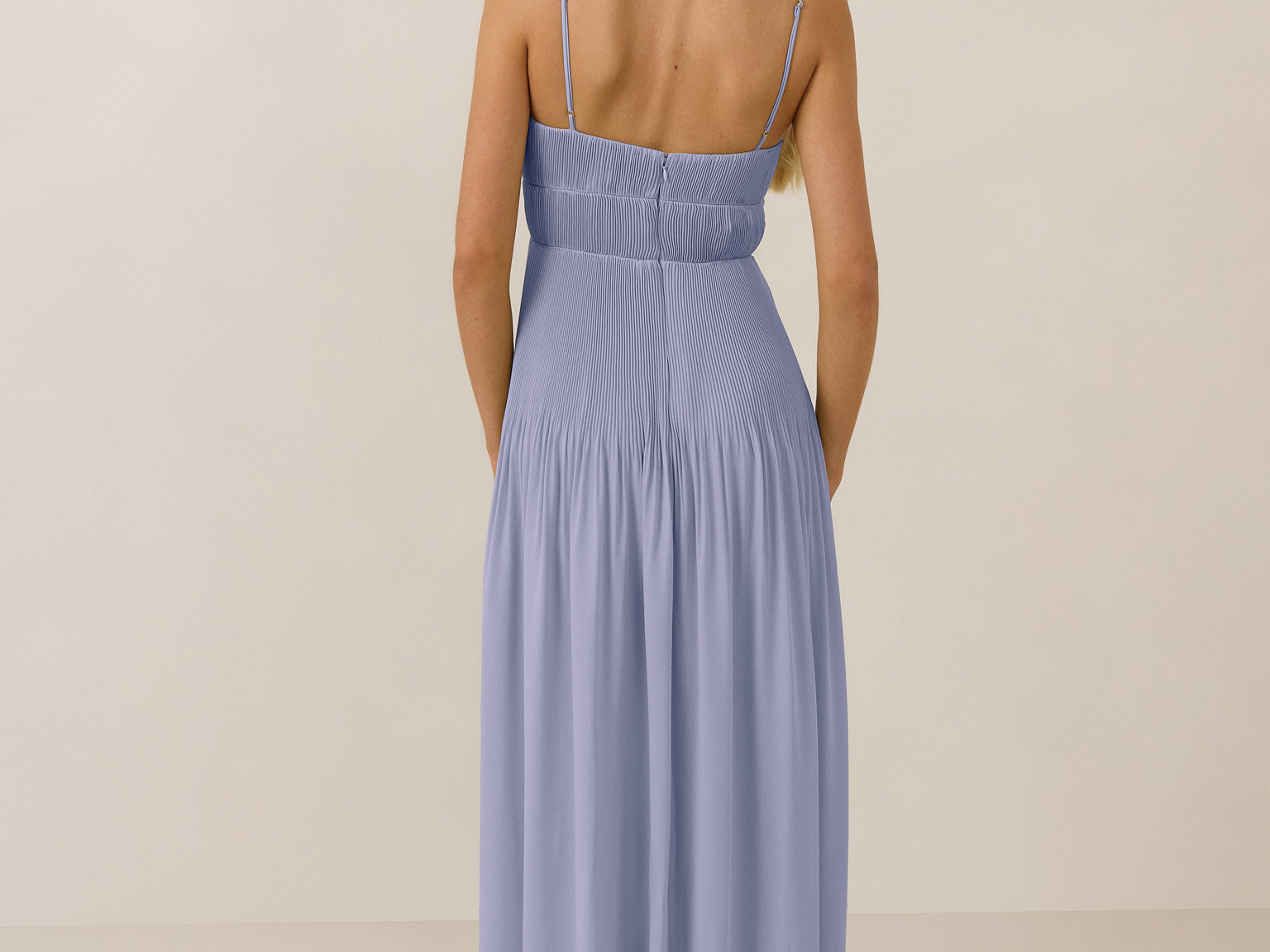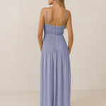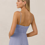 The Lena dress, crafted from airy chiffon, is a harmonious blend of elegance and movement. Its softly pleated skirt drapes gracefully, creating an ethereal flow with every stride. A modern touch is added by the structured V-wire neckline, which not only provides support but also subtly enhances the romantic silhouette.