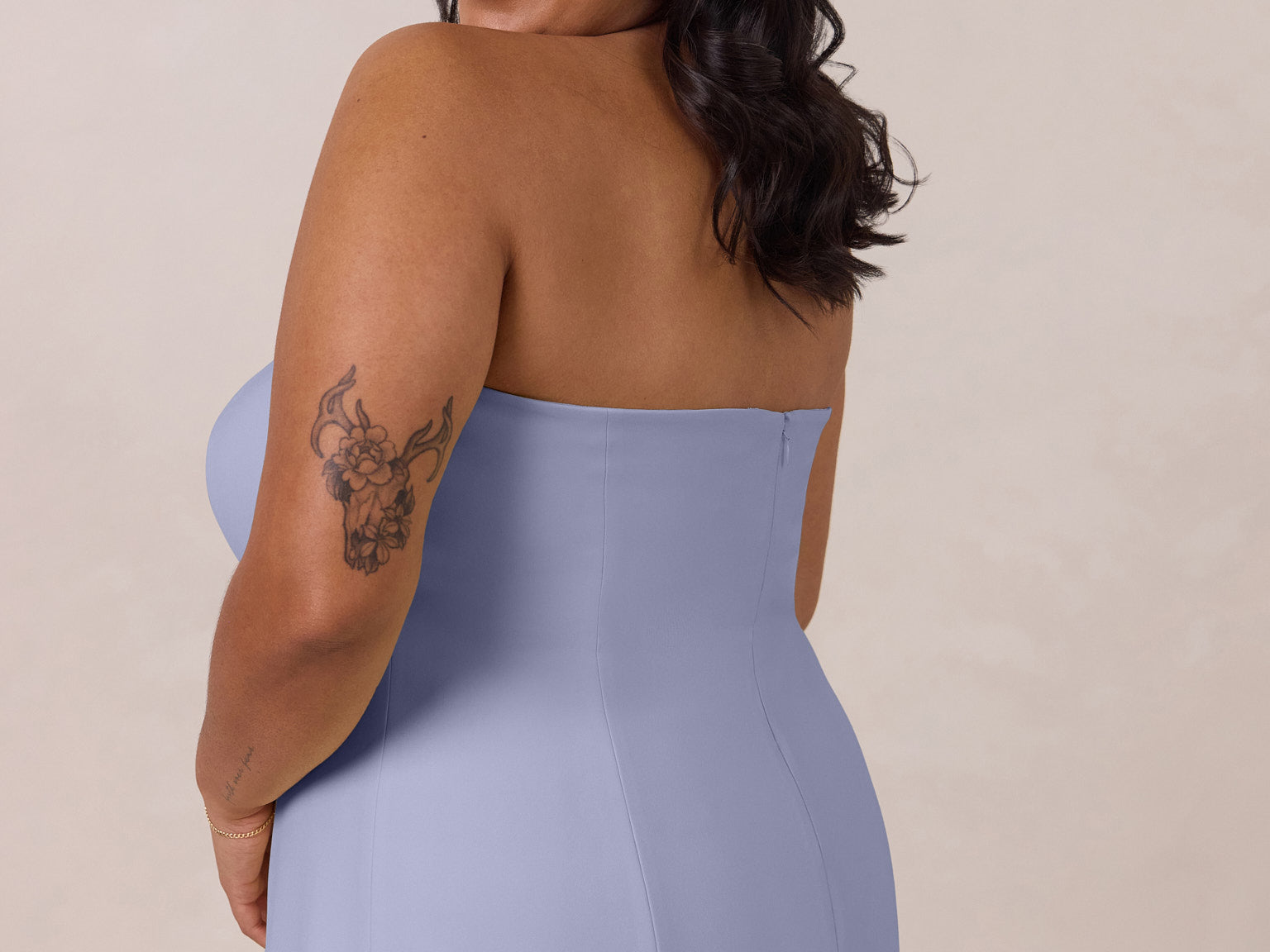 This dress captivates with its sleek stretch-crepe bodice and dreamy pleated skirt. The stretch crepe molds gently to your shape for a comfortable, supportive and flattering fit, while the lightweight skirt offers easy, effortless movement.