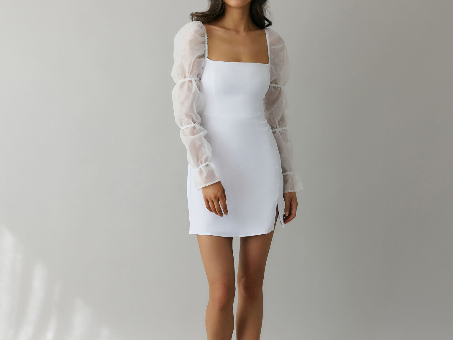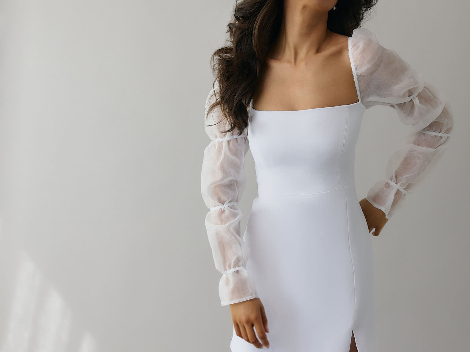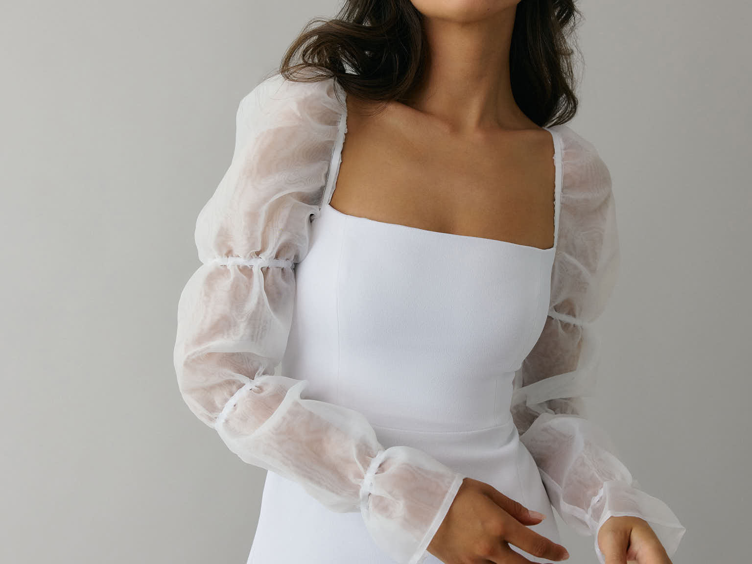 - Long puff organza sleeves