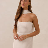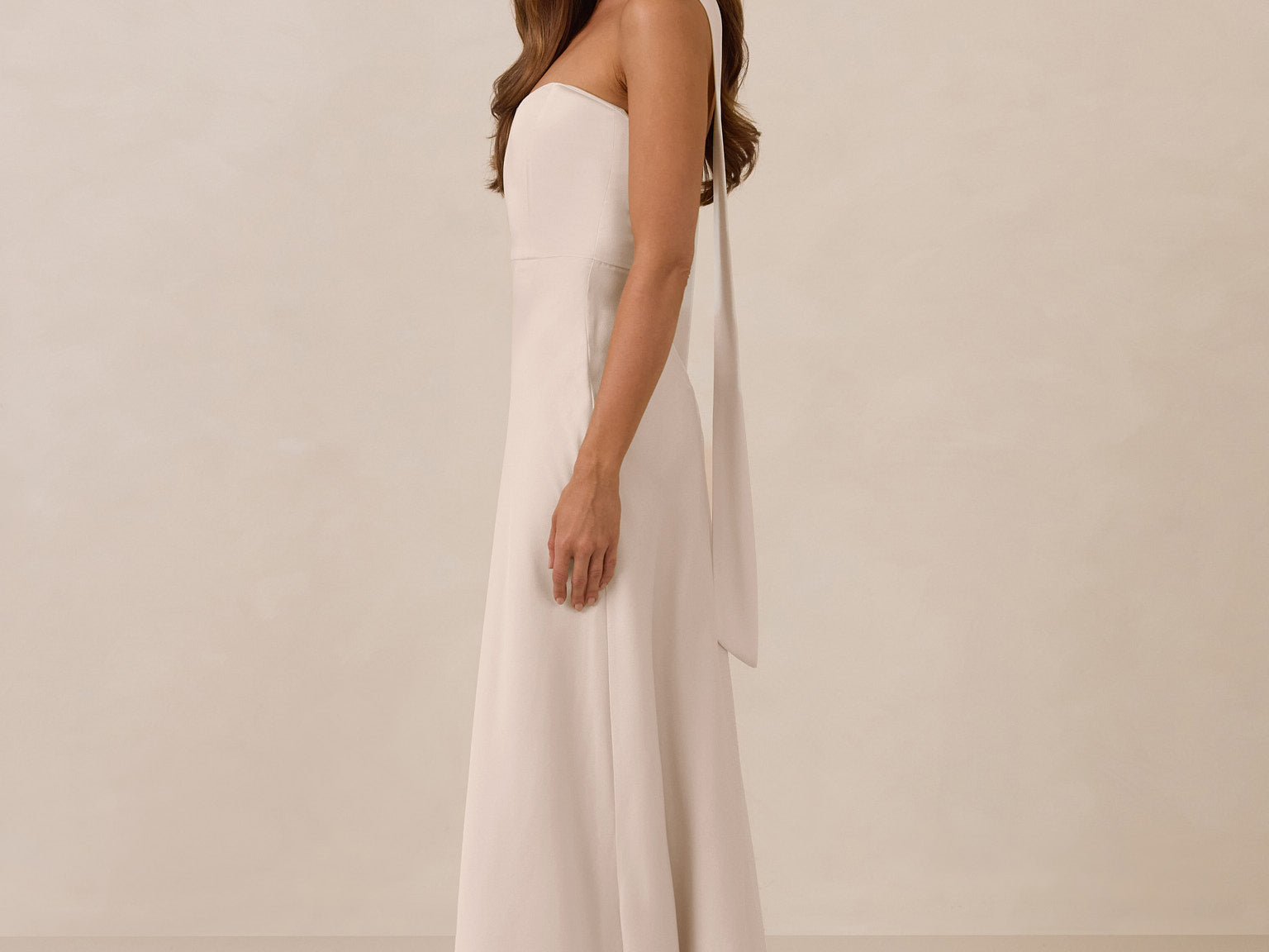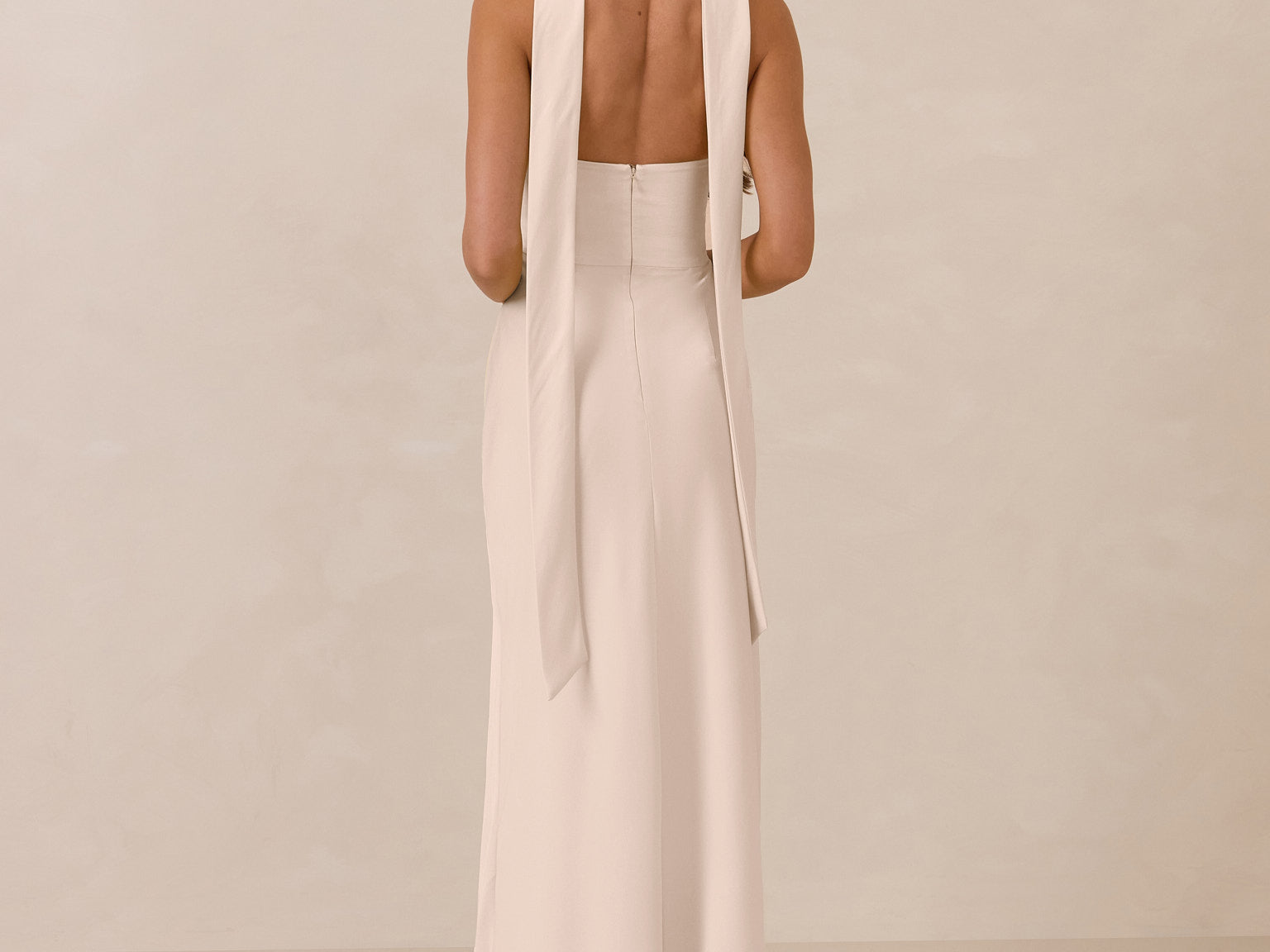 With an emphasis on the details, this satin maxi dress is cut on the bias for an ultra-flattering drape that skims the body perfectly. A subtle, hip-grazing slit adds movement and a touch of leg, while removable straps offer versatility—wear it strapless for a sleek look or with straps for added support and structure.