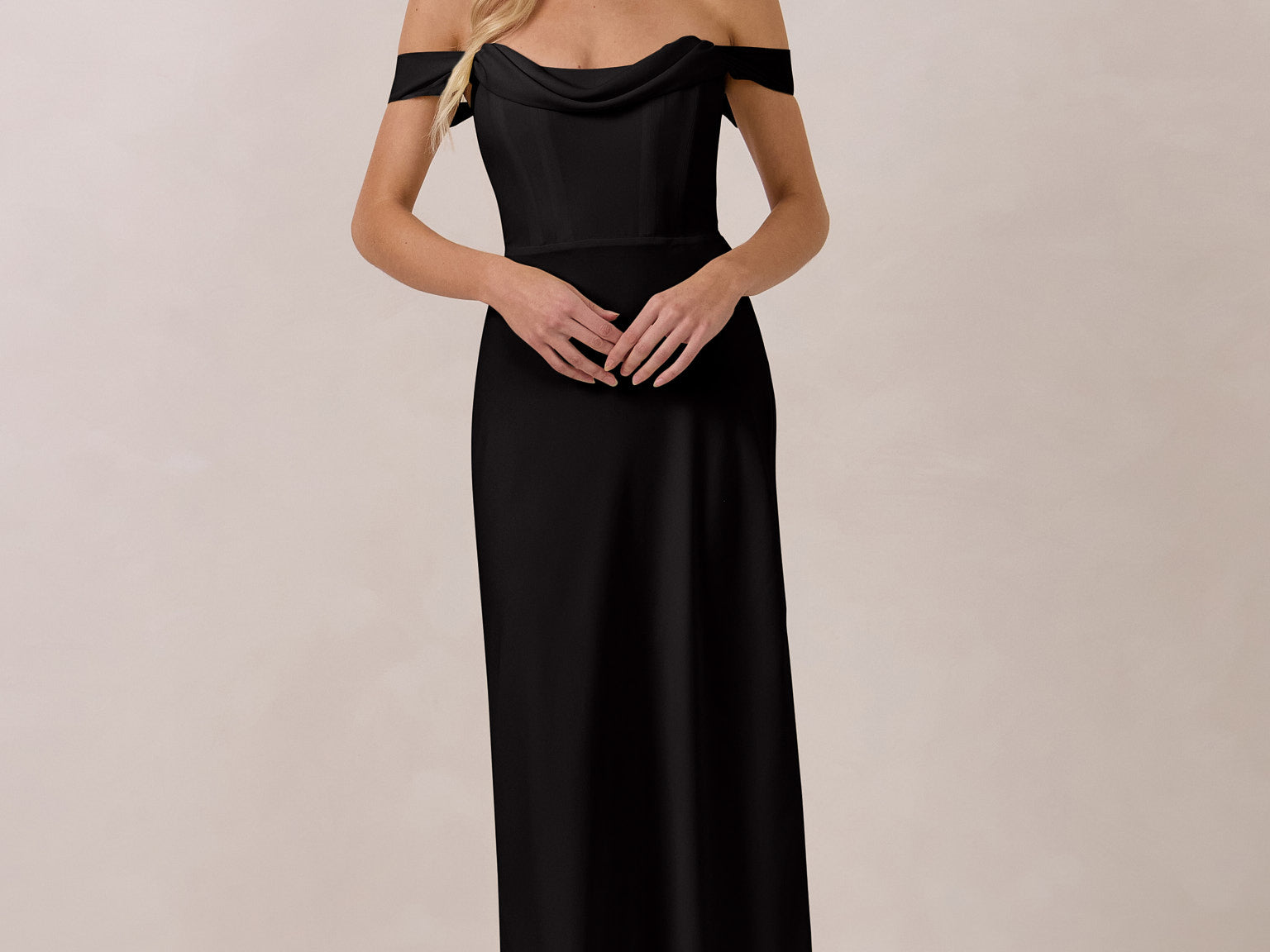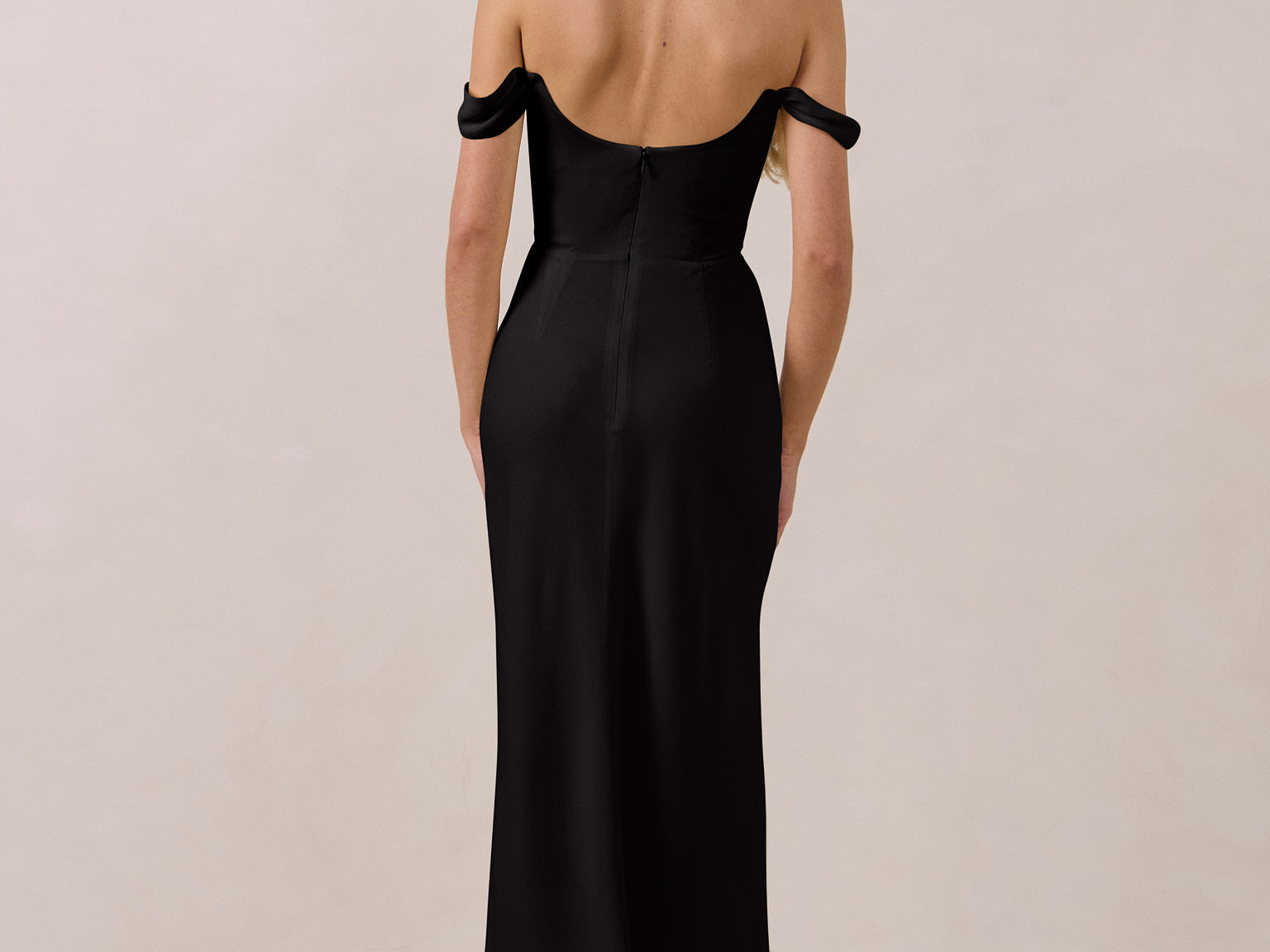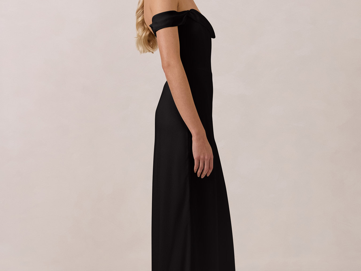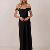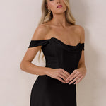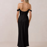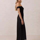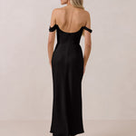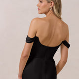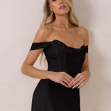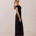 The Sutton Dress is the definition of effortless elegance. Designed with a soft draped chiffon neckline and delicate off-the-shoulder sleeves, it strikes the perfect balance between romance and refinement.