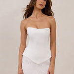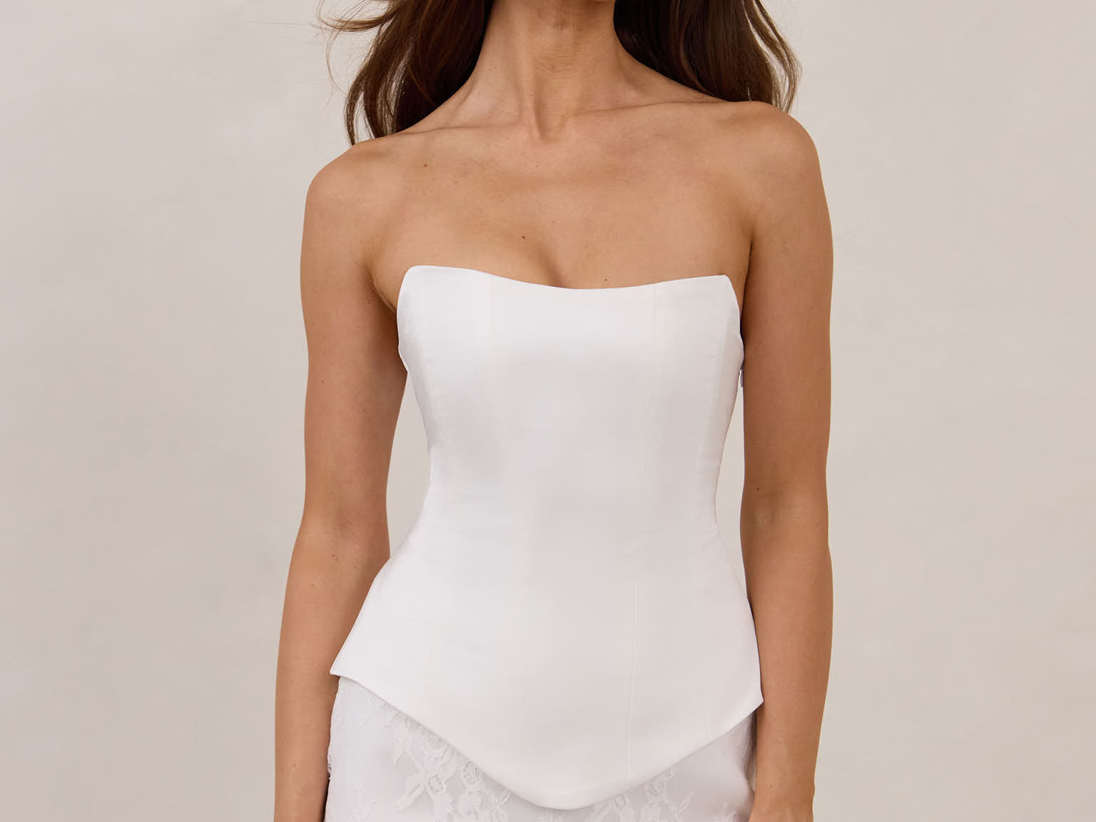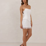 The Blythe Set is a modern bridal look with a playful edge. Featuring a structured satin corset top, paired with a lace mini skirt in Juliette Lace. Perfect for the afterparty or any moment that calls for something bold and unforgettable.