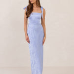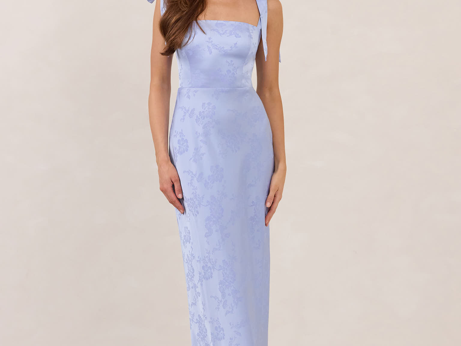 Our Jacquard is a medium-weight fabric that offers a structured feel and elegant floral patterns. It's blended with satin for a subtle sheen and soft, luxurious finish. This fabric holds its shape beautifully and drapes gracefully for a polished, tailored look, with very little stretch.