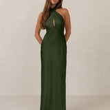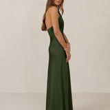 The Emery dress redefines timeless elegance with a contemporary twist. Crafted from our signature bubble satin, this full-length dress features a flattering cross-front halter neckline, creating soft drapes and a delicate keyhole detail for a touch of allure. The bias-cut skirt gracefully skims the body, ensuring comfort and a flawless silhouette that you'll want to wear repeatedly.