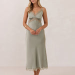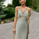 A refined take on the classic slip. Cut on the bias for a smooth drape, the Isadora is made from smooth satin and trimmed with delicate lace along the neckline, underbust, and hem. It’s fitted through the body with adjustable straps and a midi-length silhouette—minimal effort, maximum impact.
