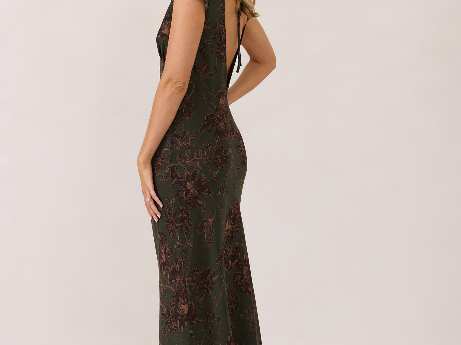 - Open back with tie detail