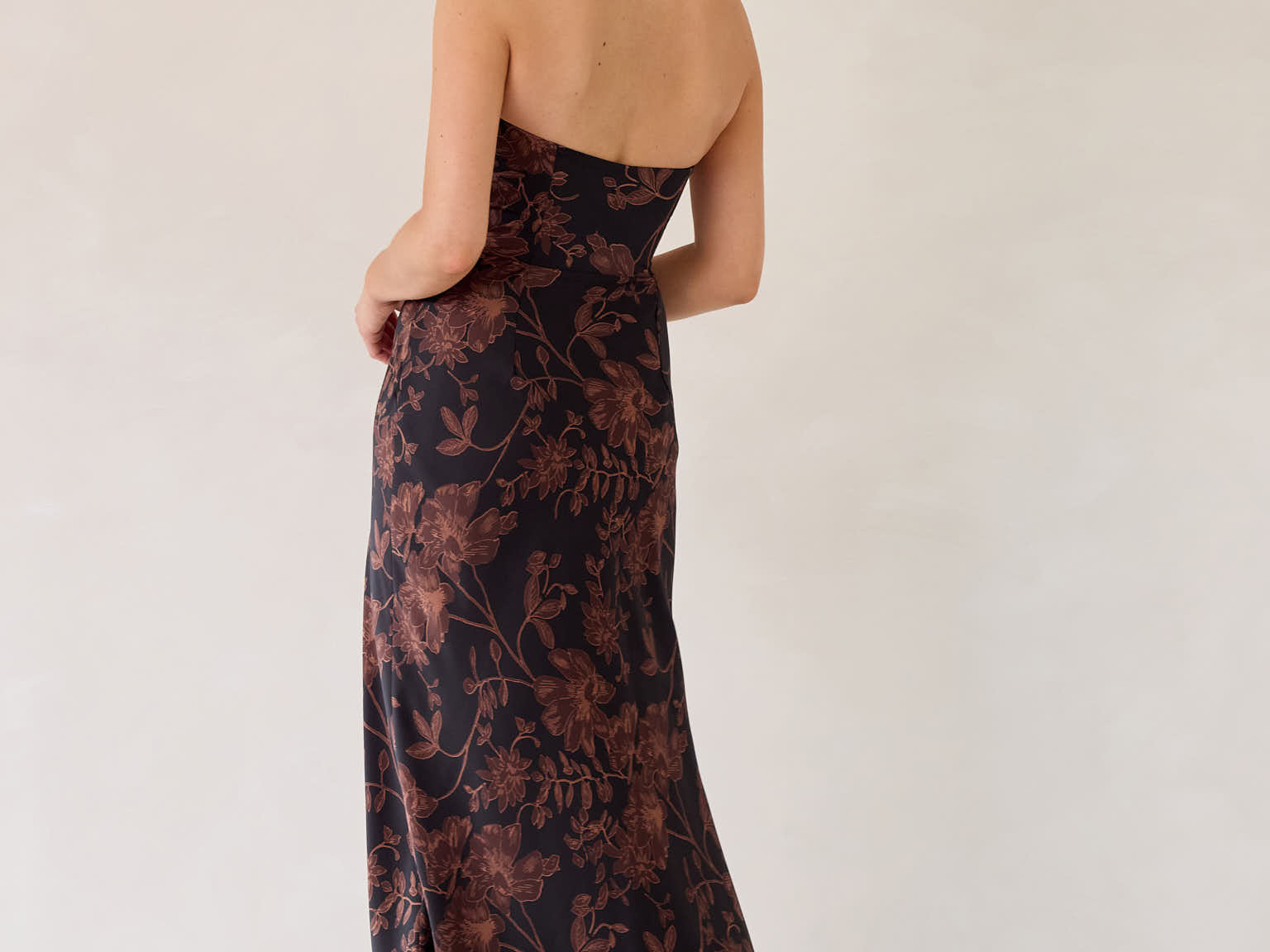 It might be the perfect dress. The subtle sweetheart neckline is flattering on just about everyone, the boned bodice is supportive and comfortable, and the way the bias-cut skirt skims the body and drops beautifully at the ankles is testament to this signature Park & Fifth style.